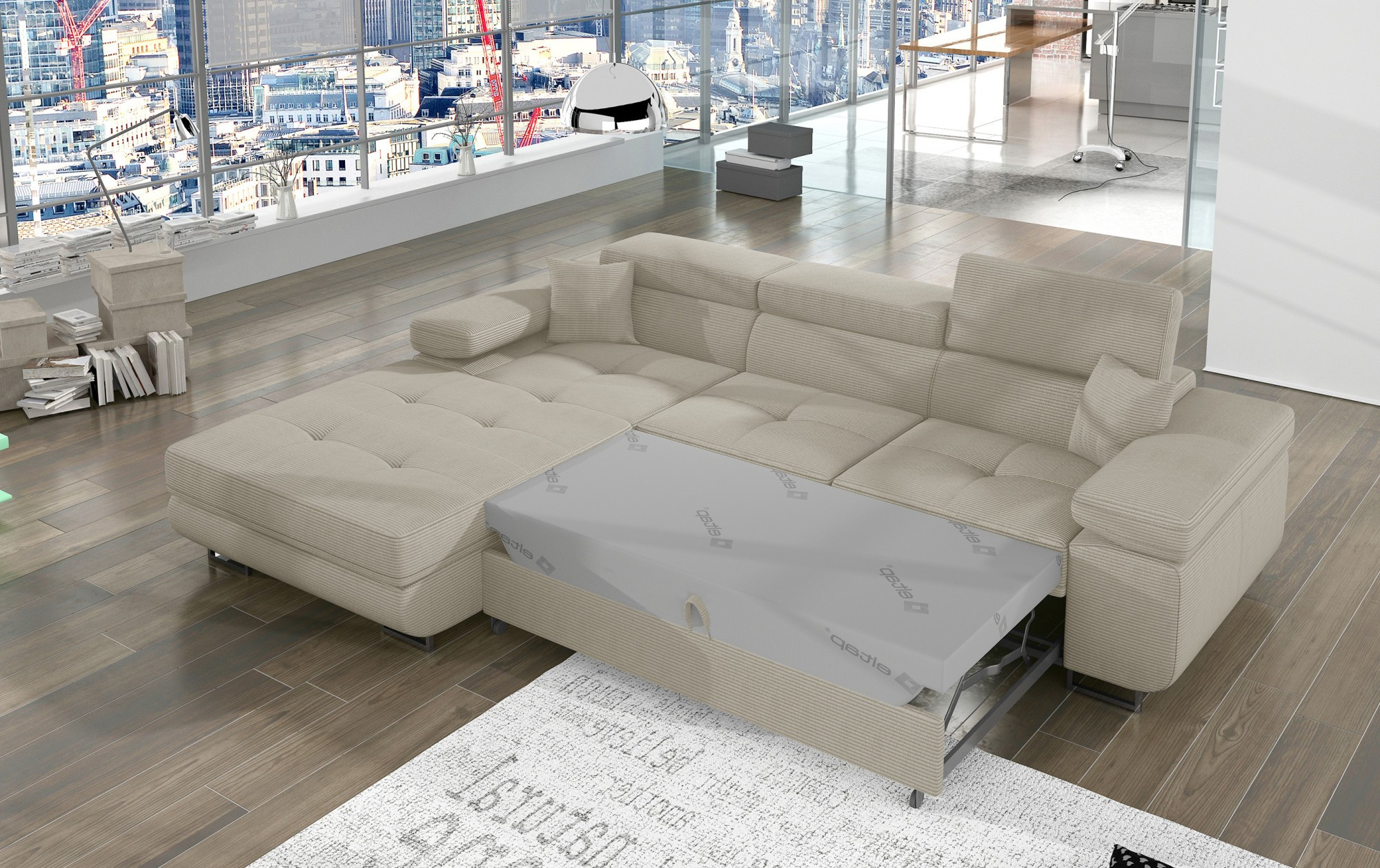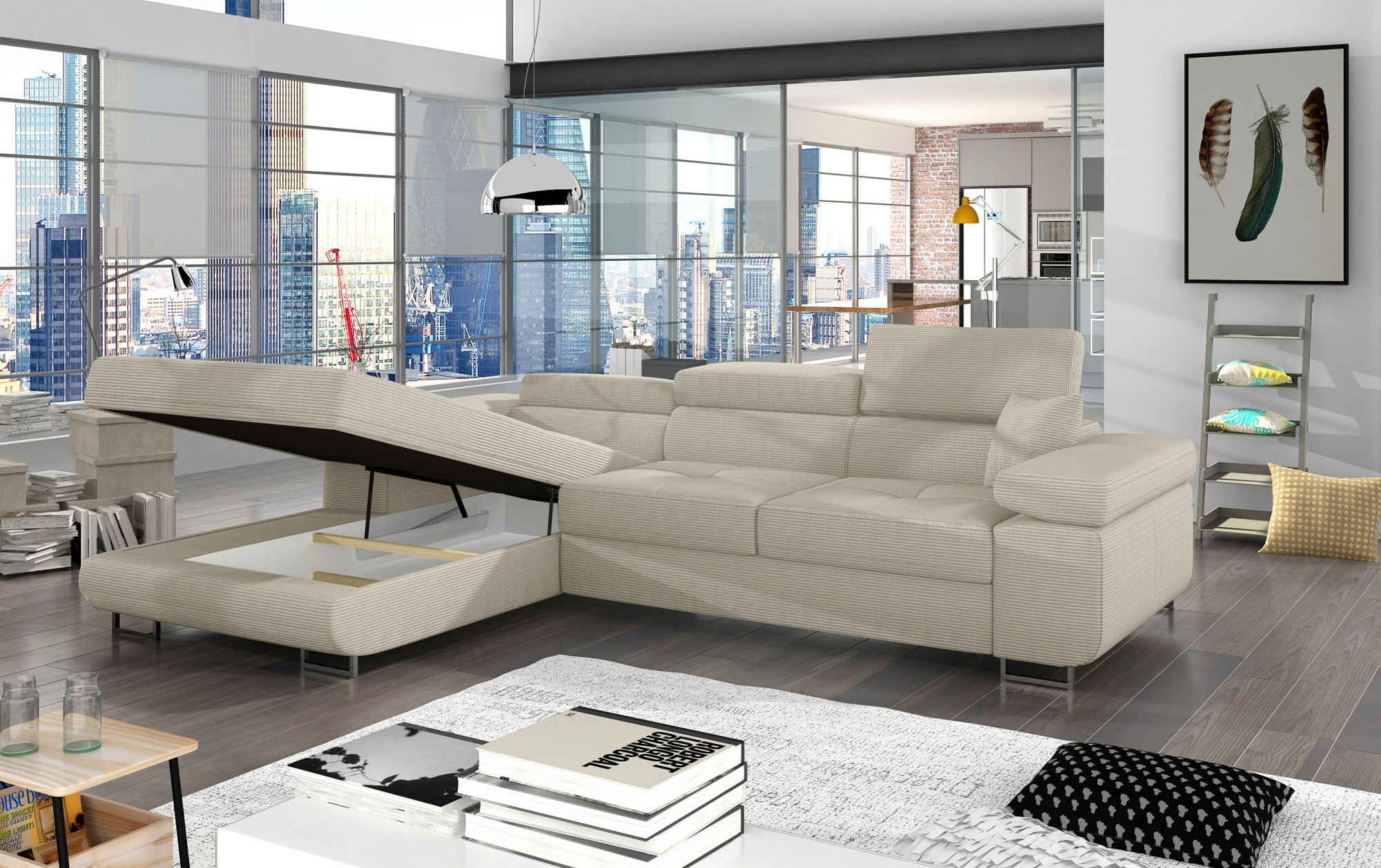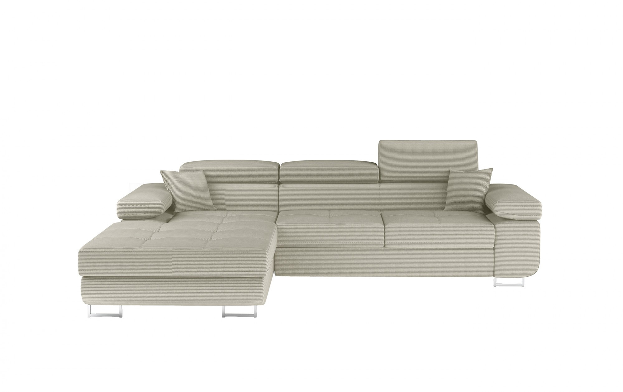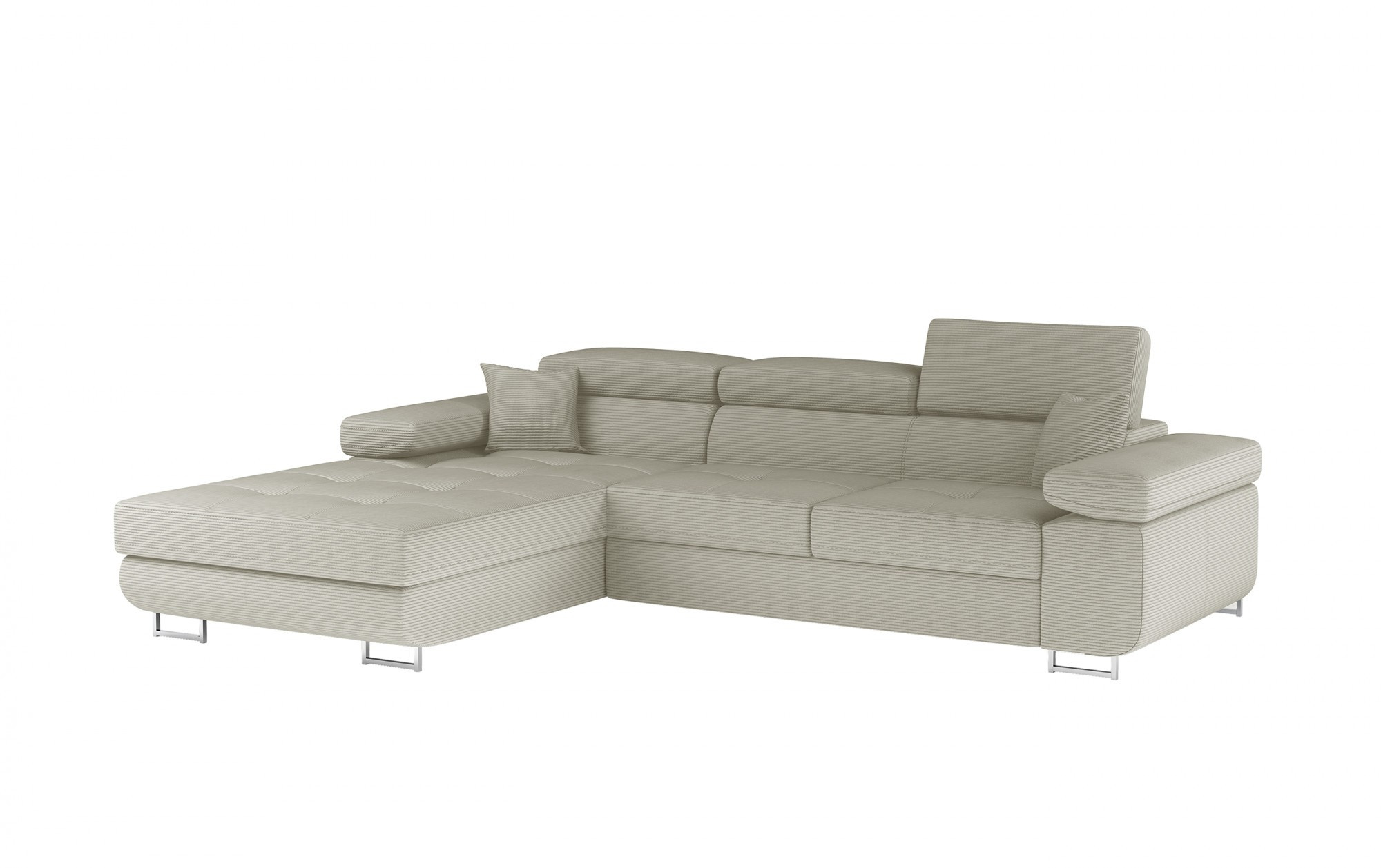 Armando je stylová, funkční a především elegantní rohová rozkládací pohovka pro náročné znalce pohodlí. Vysoký komfort odpočinku je zvýšen širokými opěrkami rukou, dobře tvarovaným opěradlem a nastavitelnými, vysokými opěrkami hlavy. Sedák prostorné rohové jednotky s rozměry 280 x 205 x 90 cm je vyroben z pěny T30, která zajišťuje maximální pohodlí a pružnost. Rohová sedací souprava ve tvaru L je vybavena funkcí spaní s plochou 125 x 198 cm. Kromě toho má také velký úložný prostor na ložní prádlo. Díky jemným detailům prošívání, elegantním stehům a vysokým chromovým nohám je rohová jednotka udržována v moderním stylu dokončení. Armando je k dispozici v mnoha barvách. Stojí za to mít takový kus nábytku ve svém domově.