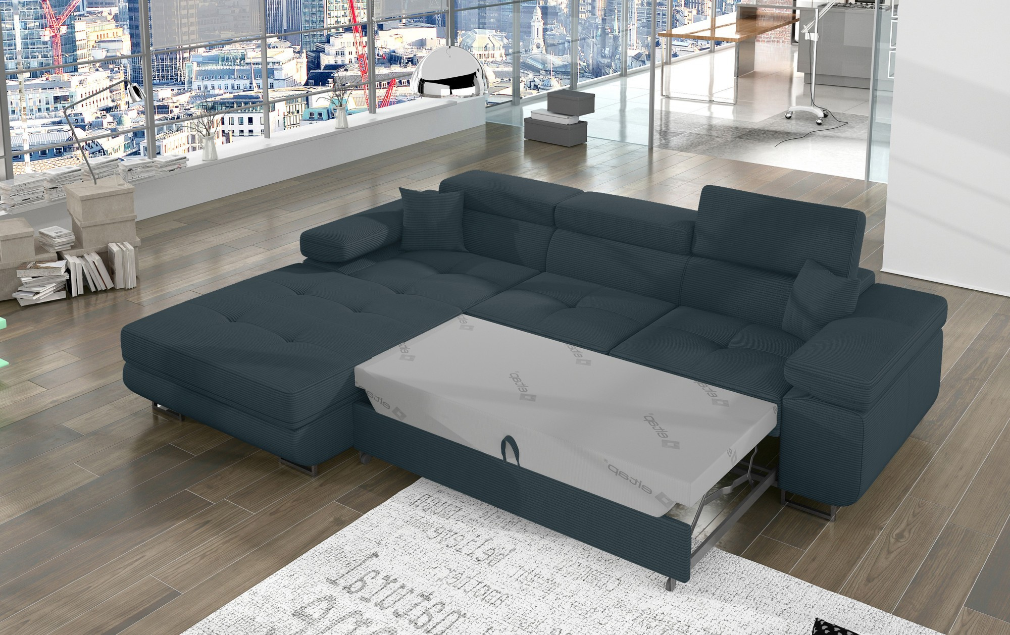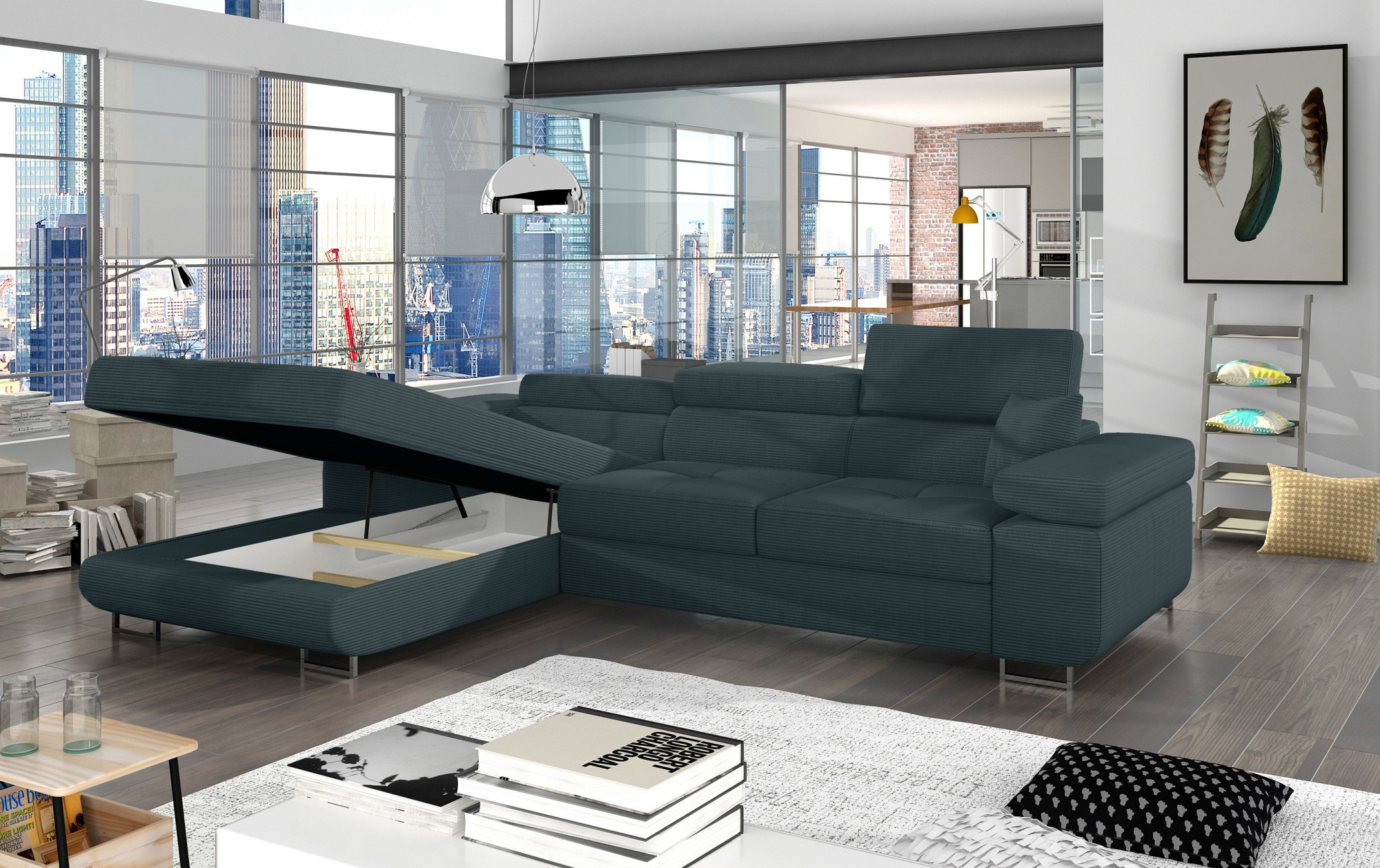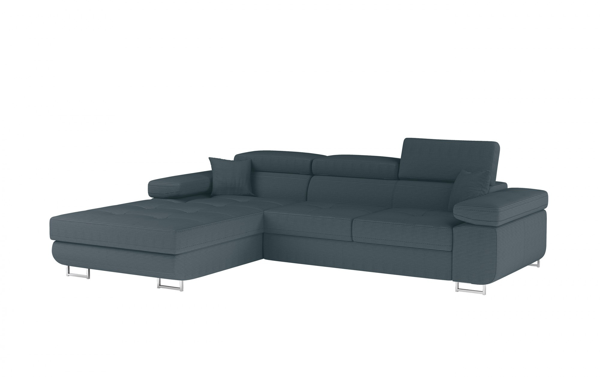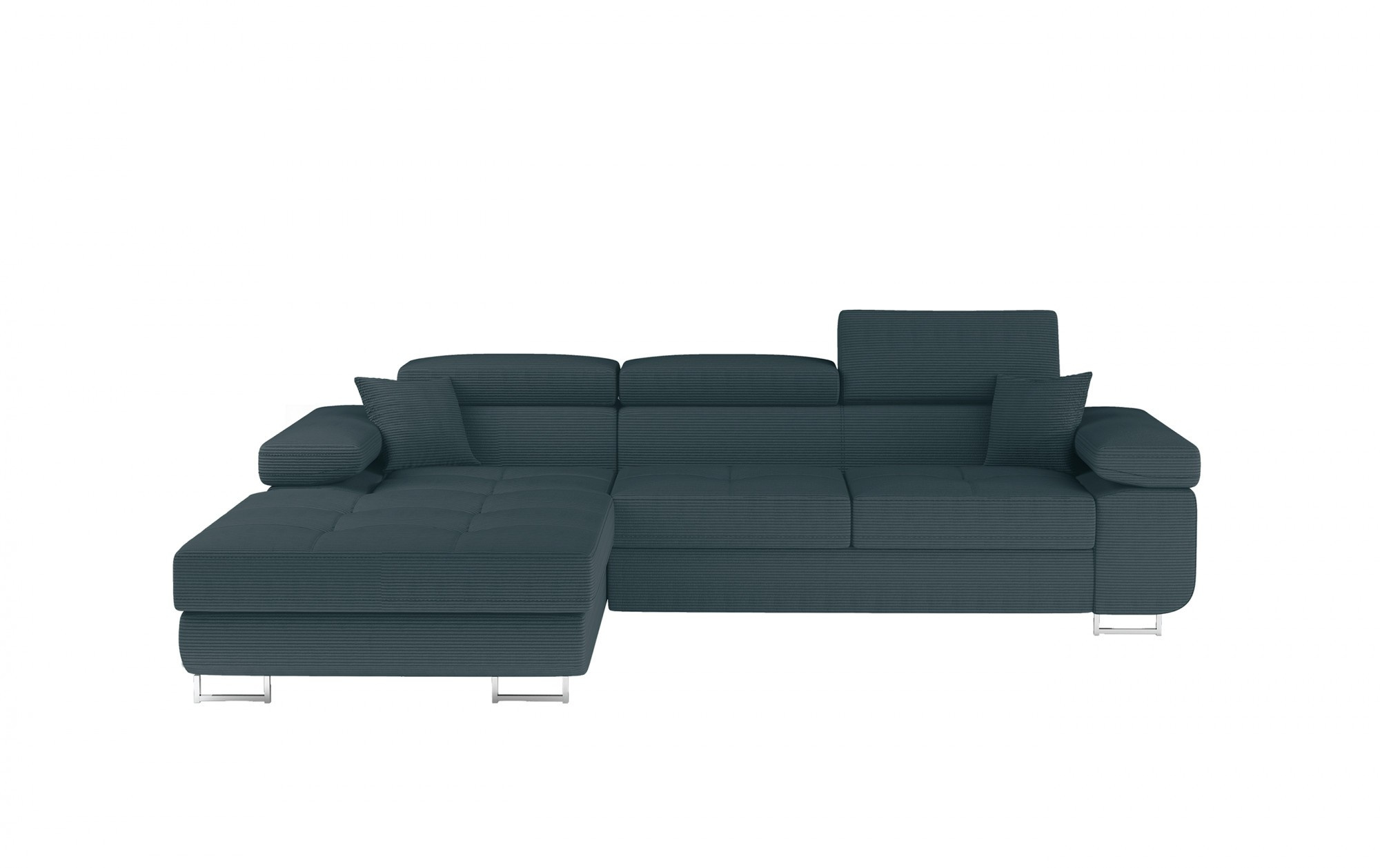 Armando je stylová, funkční a především elegantní rohová rozkládací pohovka pro náročné znalce pohodlí. Vysoký komfort odpočinku je zvýšen širokými opěrkami rukou, dobře tvarovaným opěradlem a nastavitelnými, vysokými opěrkami hlavy. Sedák prostorné rohové jednotky s rozměry 280 x 205 x 90 cm je vyroben z pěny T30, která zajišťuje maximální pohodlí a pružnost. Rohová sedací souprava ve tvaru L je vybavena funkcí spaní s plochou 125 x 198 cm. Kromě toho má také velký úložný prostor na ložní prádlo. Díky jemným detailům prošívání, elegantním stehům a vysokým chromovým nohám je rohová jednotka udržována v moderním stylu dokončení. Armando je k dispozici v mnoha barvách. Stojí za to mít takový kus nábytku ve svém domově.