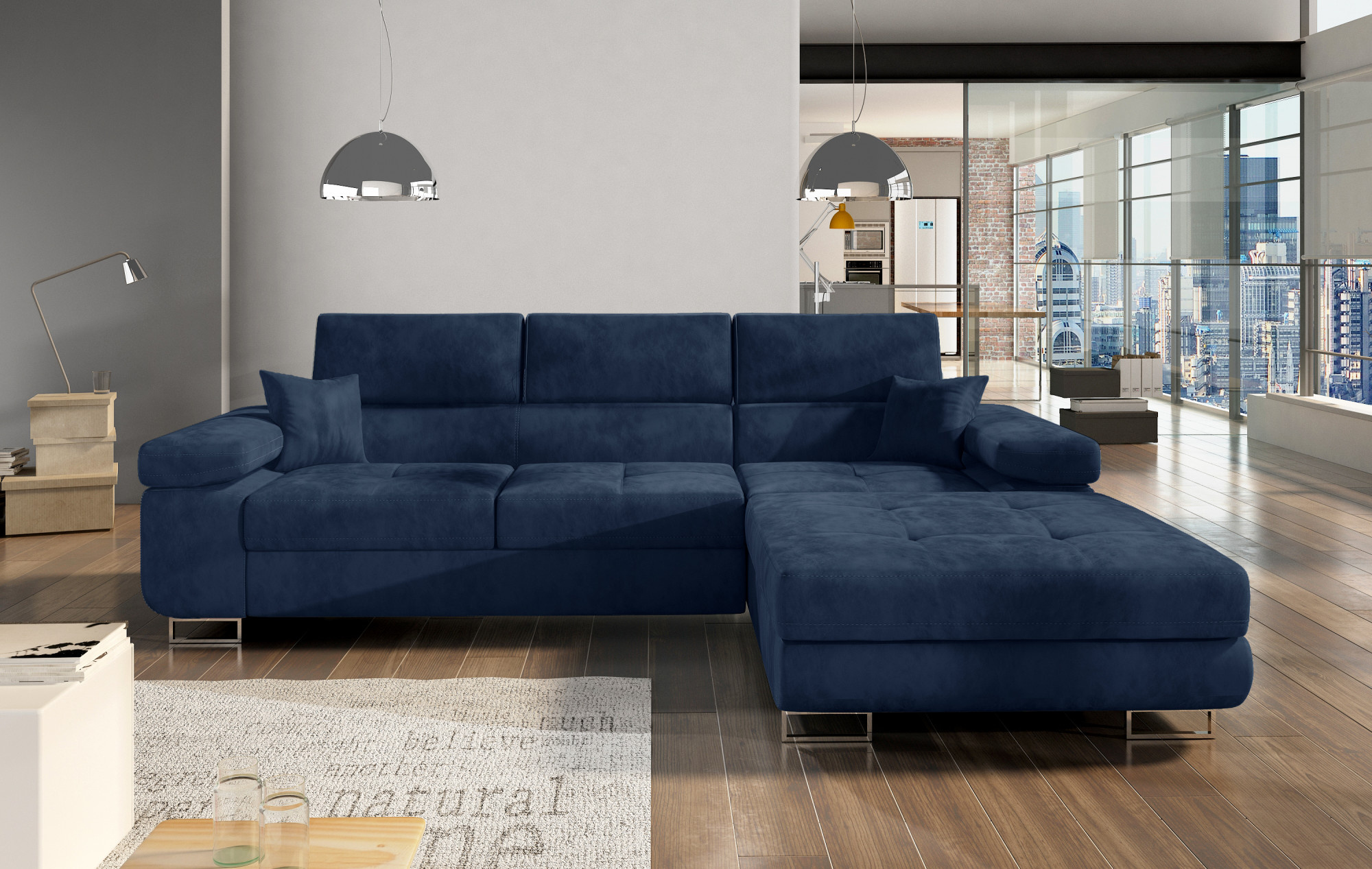 Armando je stylová, funkční a především elegantní rohová rozkládací pohovka pro náročné znalce pohodlí. Vysoký komfort odpočinku je zvýšen širokými opěrkami rukou, dobře tvarovaným opěradlem a nastavitelnými, vysokými opěrkami hlavy. Sedák prostorné rohové jednotky s rozměry 280 x 205 x 90 cm je vyroben z pěny T30, která zajišťuje maximální pohodlí a pružnost. Rohová sedací souprava ve tvaru L je vybavena funkcí spaní s plochou 125 x 198 cm. Kromě toho má také velký úložný prostor na ložní prádlo. Díky jemným detailům prošívání, elegantním stehům a vysokým chromovým nohám je rohová jednotka udržována v moderním stylu dokončení. Armando je k dispozici v mnoha barvách. Stojí za to mít takový kus nábytku ve svém domově.