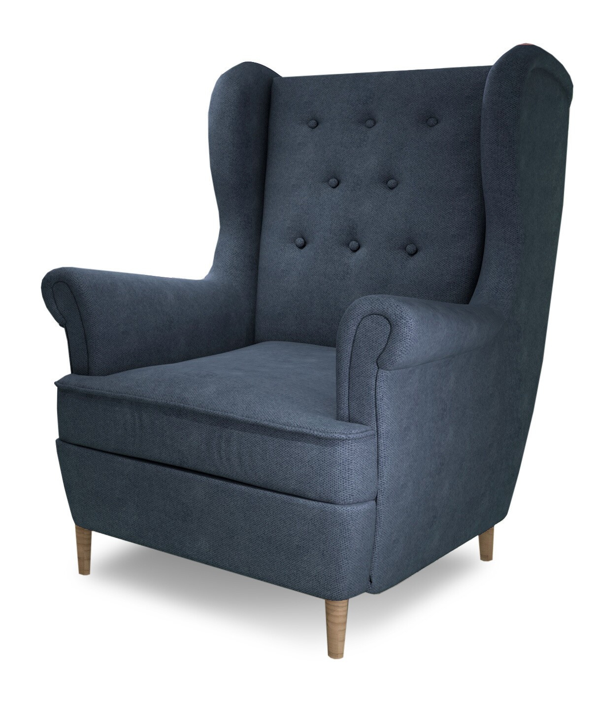 Aros je stylové a velmi elegantní křeslo, které kombinuje originální design s nadpozemským pohodlím. Bude se ideálně hodit jako prvek dekorace, jehož účelem je zaručit maximální pohodlí při odpočinku. Křeslo Aros je kus nábytku typu ušák, což znamená, že jeho charakteristiky zahrnují: prostorné sedadlo, vysoké područky a opěradlo s výrazným zakončením. Představujeme naše křeslo, u kterého nelze nezmínit vysokou kvalitu zpracování a jemné, precizní dekorace, ve formě dřevěných nohou, prošívání na područkách a prošívání na opěradle. Kromě toho je tento model k dispozici v různých barvách. Vysokou funkčnost 85 x 90 x 103 cm Aros ovlivňuje také typ výplně sedadla. Kombinace odolné vlnité pružiny s měkkou, flexibilní pěnou T30 zajišťuje správné tvarování a naše tělo je během používání řádně chráněno. Aros je jedinečný kus nábytku, který kombinuje potěšení s užitkem - nejenže vypadá skvěle, ale je také vysoce funkční, pohodlný a chrání naši páteř. Aros je hit!