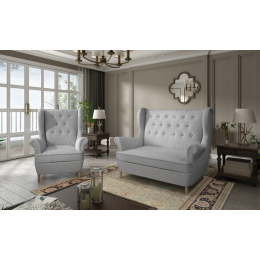 Aros lounge set je ztělesněním dobrého stylu a maximálního pohodlí. Taková sada jistě oživí jakýkoli, i nenápadně vypadající interiér. To vše je způsobeno jednotlivými prvky naší sady. Vkusné a elegantní křeslo kombinuje originální design s výjimečným pohodlím při odpočinku. Křeslo, stejně jako pohovka Aros, jsou nábytkem typu uszak, což znamená, že jejich charakteristiky zahrnují: prostorné sedadlo, vysoké područky a opěradlo s výrazným zakončením. Při představování našeho nábytku nelze nezmínit vysokou kvalitu zpracování a jemné, precizní dekorace. Křeslo je kus nábytku o rozměrech 85 x 90 x 103 cm a pohovka - 150 x 90 x 103 cm. Vysoká funkčnost naší sady je také ovlivněna typem výplně sedadel. Kombinace odolné vlnité pružiny s měkkou, flexibilní pěnou T30 činí tuto volbu hitem! Sedadla jsou správně profilovaná a naše tělo je během používání řádně chráněno. Sada Aros je kus nábytku, který díky svému vzhledu a pohodlí bude skvělou ukázkou interiéru, ve kterém bude umístěn. Jak křesla, tak pohovka tvoří dokonalou sadu.