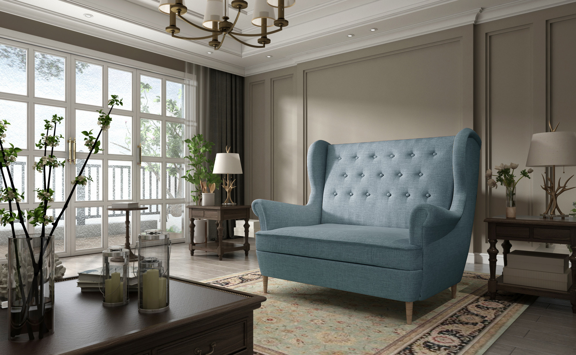 Aros je stylová pohovka s rozměry 150 x 90 x 103 cm, která určitě upoutá pozornost. Kromě původního designu a retro stylového provedení stojí za zdůraznění také neobvyklý komfort. Pohodlí - především - je ovlivněno výplní sedadla, která se skládá z vlnité pružiny a pěny T30. Vizuální prvky, které odlišují náš nábytek, zahrnují prošívanou a šitou opěrku hlavy, vysoké, otočené dřevěné nohy, vysoké područky a množství dostupných barevných variant. Aros je kus nábytku, který díky svému vzhledu a pohodlí bude skvělou vizitkou bytu.
