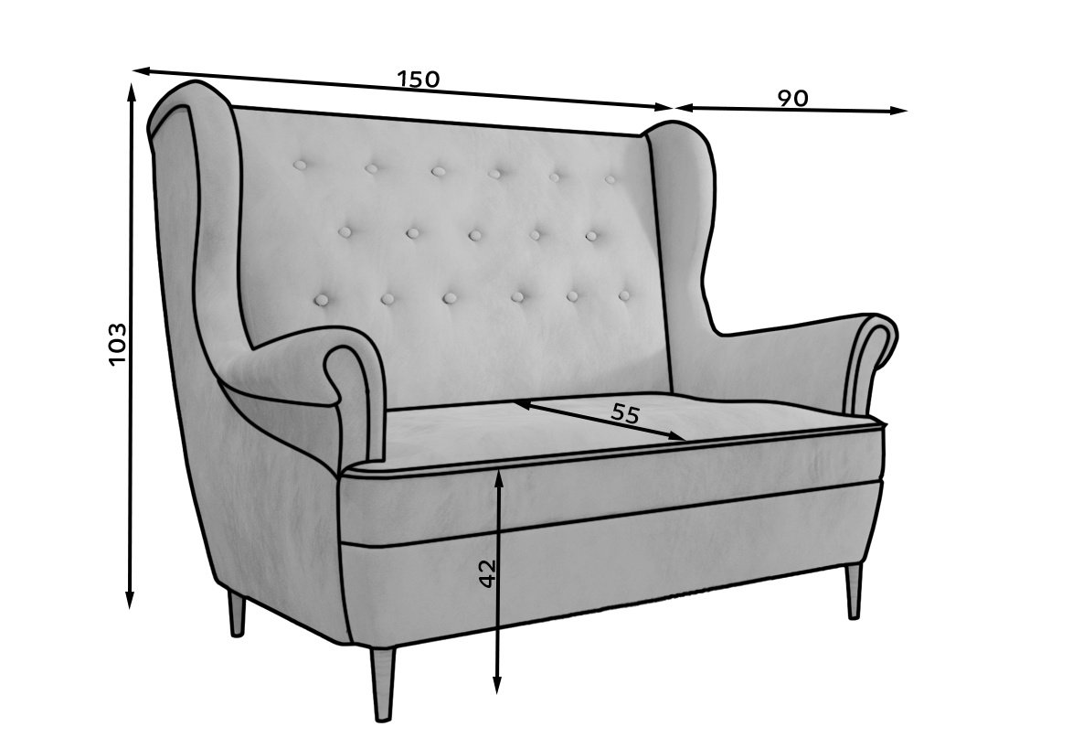 Aros je stylová pohovka s rozměry 150 x 90 x 103 cm, která určitě upoutá pozornost. Kromě původního designu a retro stylového provedení stojí za zdůraznění také neobvyklý komfort. Pohodlí - především - je ovlivněno výplní sedadla, která se skládá z vlnité pružiny a pěny T30. Vizuální prvky, které odlišují náš nábytek, zahrnují prošívanou a šitou opěrku hlavy, vysoké, otočené dřevěné nohy, vysoké područky a množství dostupných barevných variant. Aros je kus nábytku, který díky svému vzhledu a pohodlí bude skvělou vizitkou bytu.