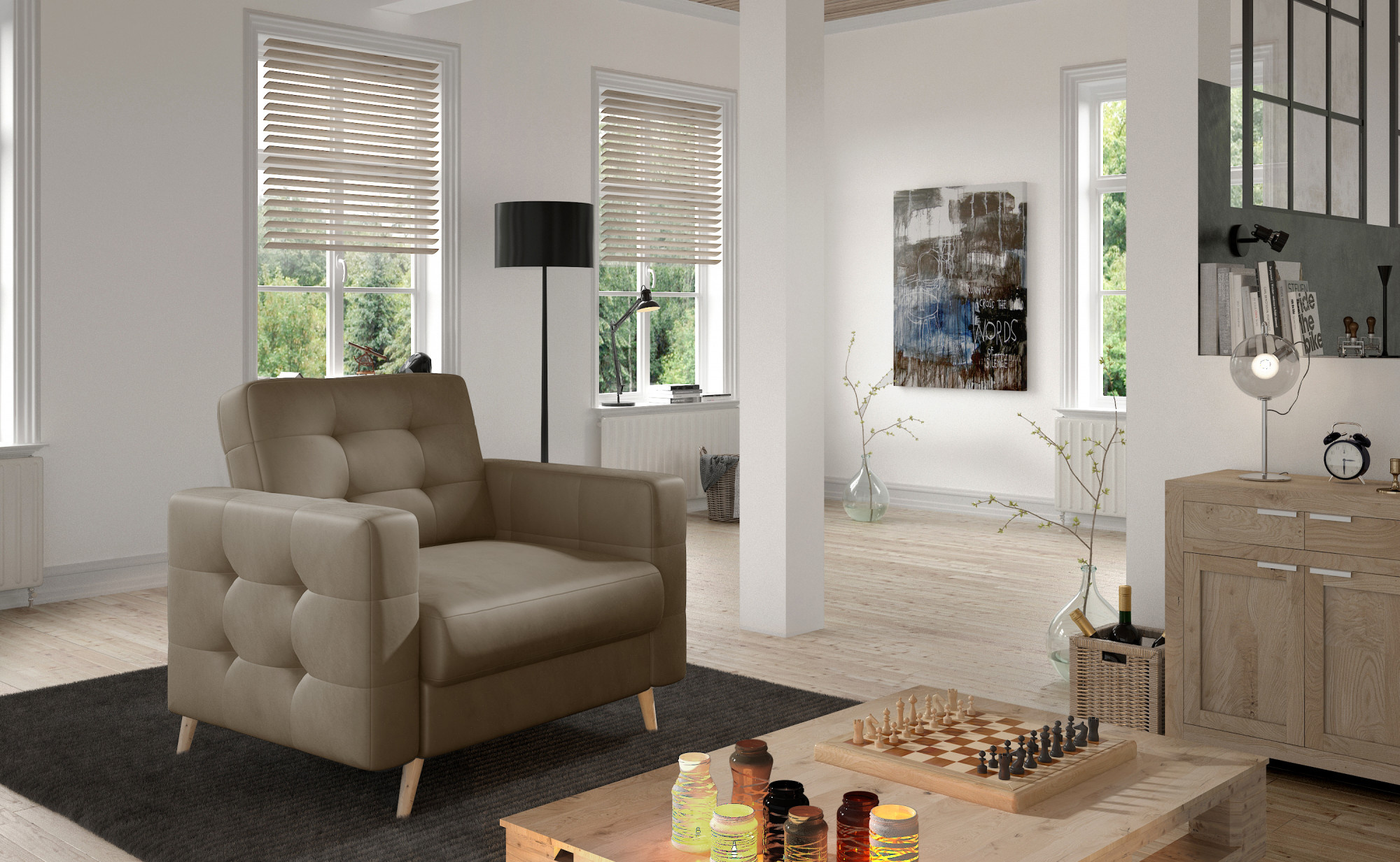 Křeslo Asgard je prostorný a elegantní kus nábytku s rozměry 105 x 92 x 88 cm, který je udržován v klasickém designu. Díky svému dekorativnímu prošívání na dřevěných nohách a opěradle obohatí jakýkoli obyčejný kout domova. Křeslo má také hluboký, hladký sedák, tvarovanou opěrku zad, prostorný polštář a mnoho barevných variant. Neuvěřitelný komfort našeho křesla je také ovlivněn jeho výplní. Vlnitá pružina v kombinaci s pěnou T30 je vynikajícím řešením pro znalce pohodlí. Díky nim je sedadlo správně tvarované a naše páteř je během používání řádně chráněna. Tento model, v závislosti na vašich preferencích, lze umístit jak do ložnice, obývacího pokoje, tak i do pracovny. Plně doporučujeme náš nábytek Asgard. Taková volba nikdy nezklame!