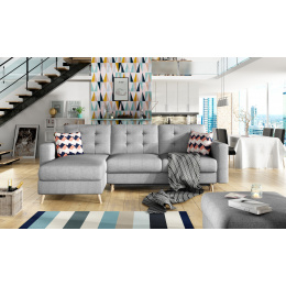 Asgard L je vkusná, atmosférická a prostorná rohová jednotka v retro stylu s rozměry 248 x 162 x 93 cm. Díky měkkému a pohodlnému sedáku, který je vyplněn vlnovou pružinou a pěnou T30, je ideální pro relaxaci během dne i pro odpočinek v noci. Funkce spaní o rozměrech 120 x 210 cm je podporována automatizovaným rozkládacím mechanismem DL. Model Asgard L má také prostorný úložný prostor na ložní prádlo. Jeho výhody, které zvyšují estetické vjemy, zahrnují stylové prošívání a jemné prošívání na stranách, stejně jako na podpěře rohové jednotky. Kromě toho jsou zde také vysoké, dřevěné, soustružené nohy, čalouněné opěradlo, stejně jako vhodně tvarovaná opěrka zad a vysoké područky. Prostorná rohová jednotka Asgard L je navržena pro elegantní a stylové interiéry. S takovým kusem nábytku jistě získáte značnou dávku luxusu, která oživí váš interiér domova.