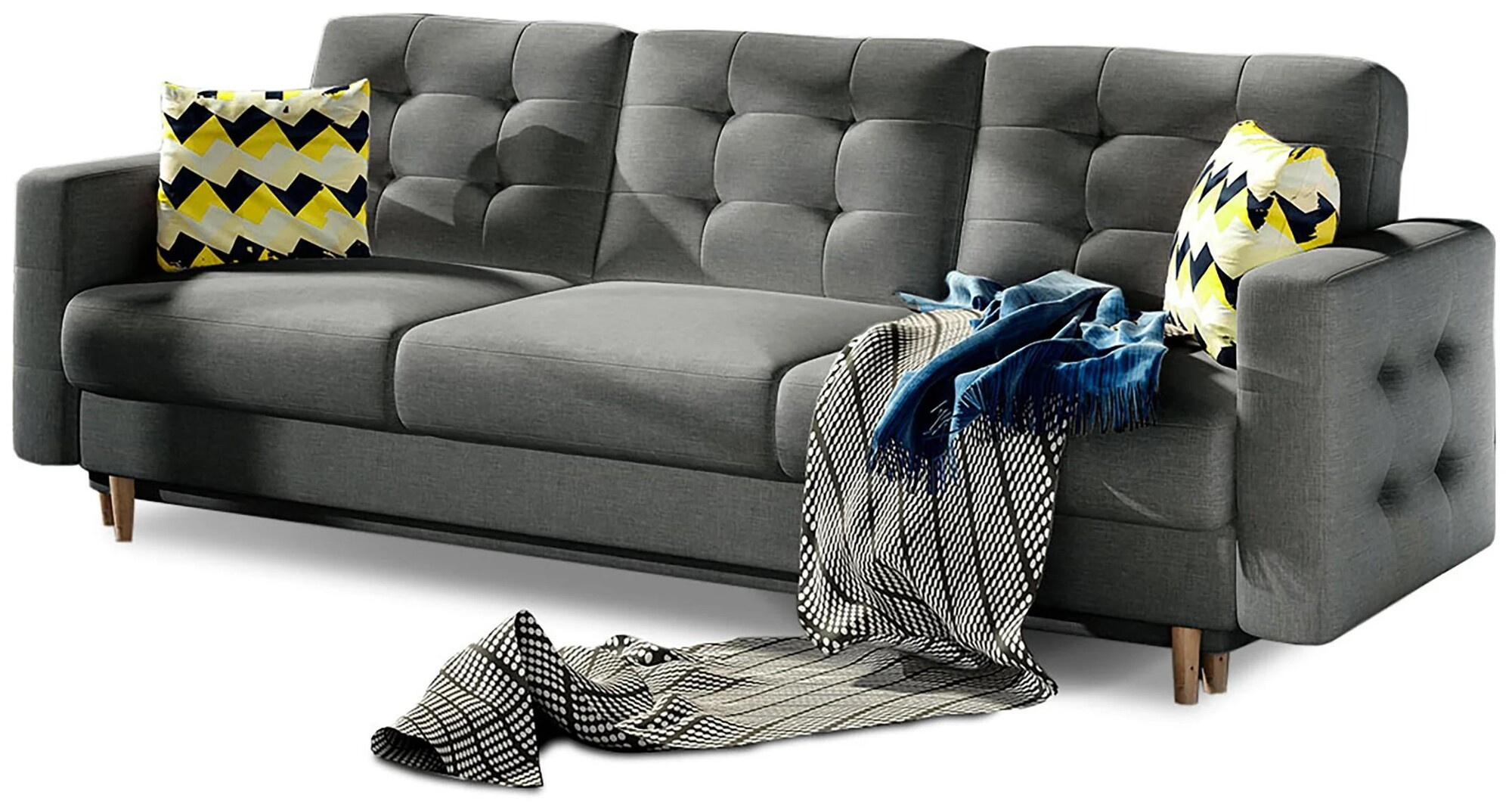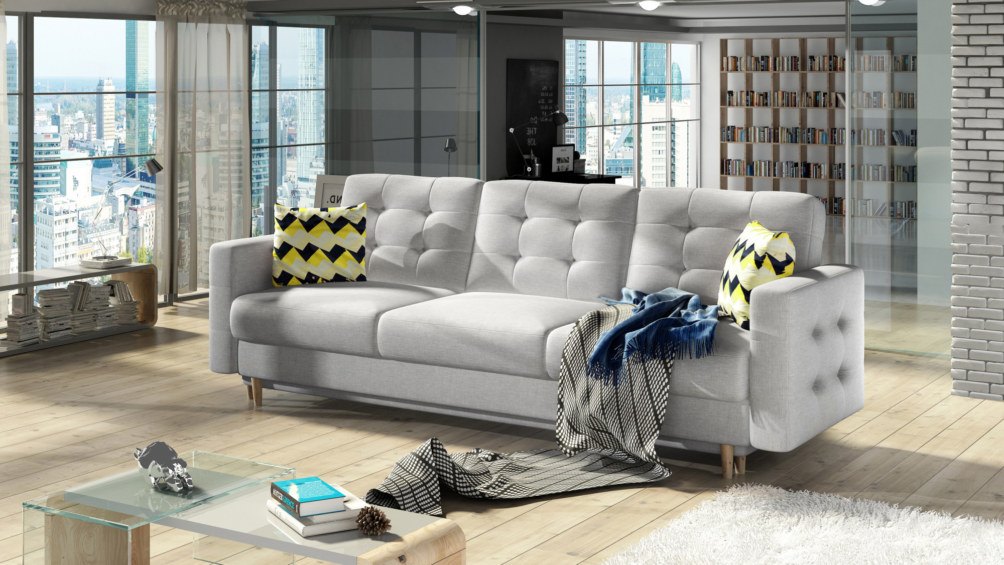 Navíc je pohovka vybavena úložným prostorem, který poskytuje dostatek místa pro uložení lůžkovin, polštářů nebo dalších předmětů, které chcete mít po ruce, ale zároveň je mít úhledně uschované.