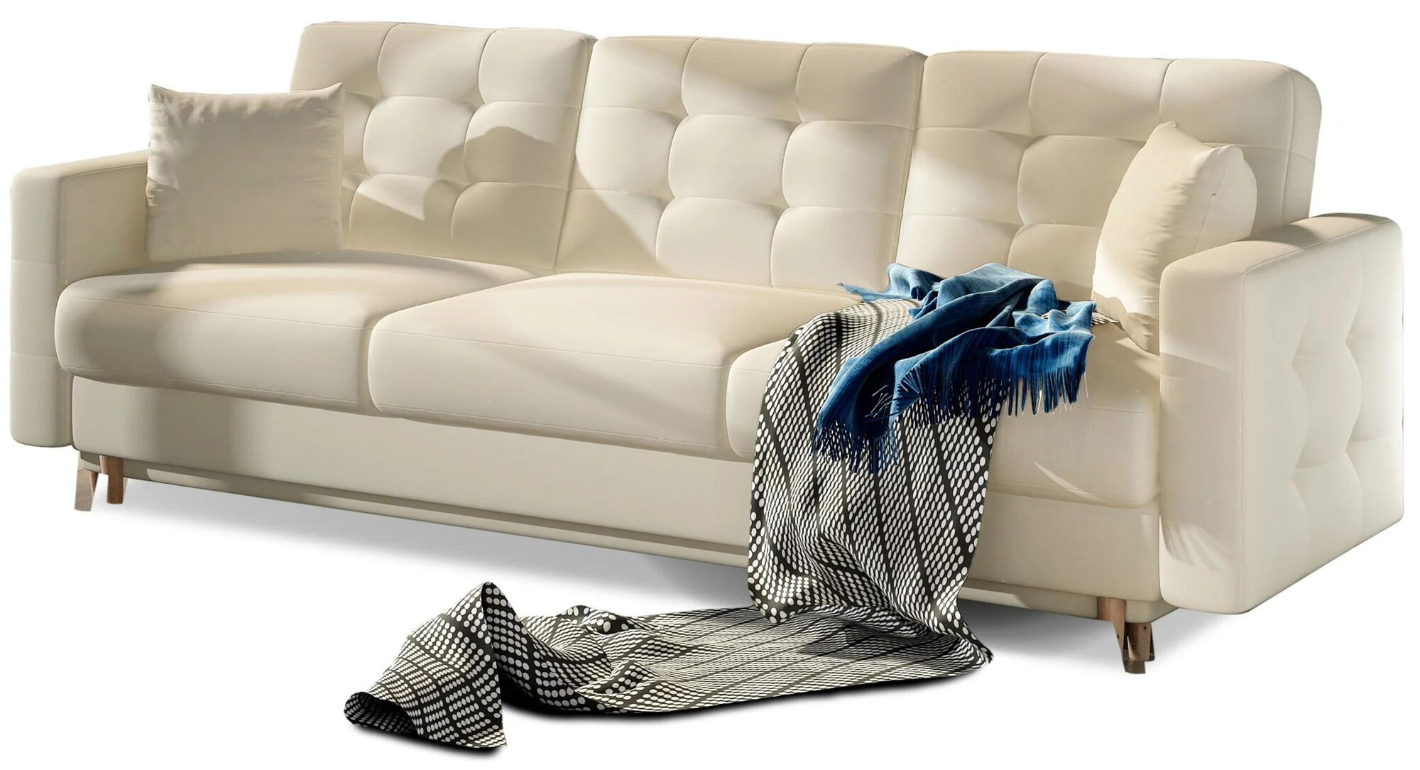 Navíc je pohovka vybavena úložným prostorem, který poskytuje dostatek místa pro uložení lůžkovin, polštářů nebo dalších předmětů, které chcete mít po ruce, ale zároveň je mít úhledně uschované.