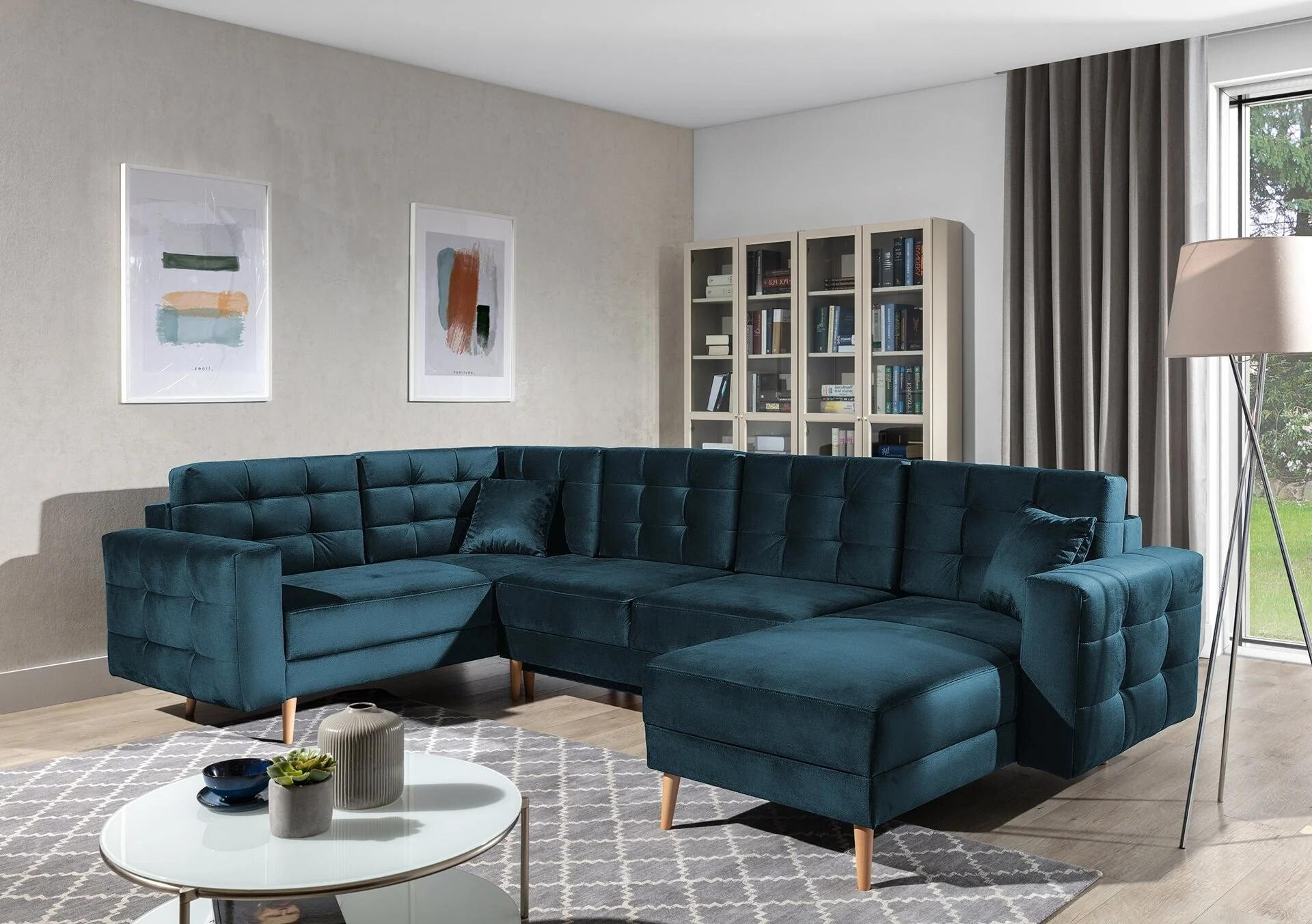 Sedací souprava ve tvaru U ASGARD je skvělou volbou pro ty, kteří hledají kombinaci moderního designu, komfortu a praktičnosti. Její prostorný a pohodlný design z ní činí ideální volbu pro rodinné domy i prostorné byty. Ať už ji umístíte do obývacího pokoje, herny nebo jiného prostoru, jistě se stane oblíbeným místem pro relaxaci a zábavu.
