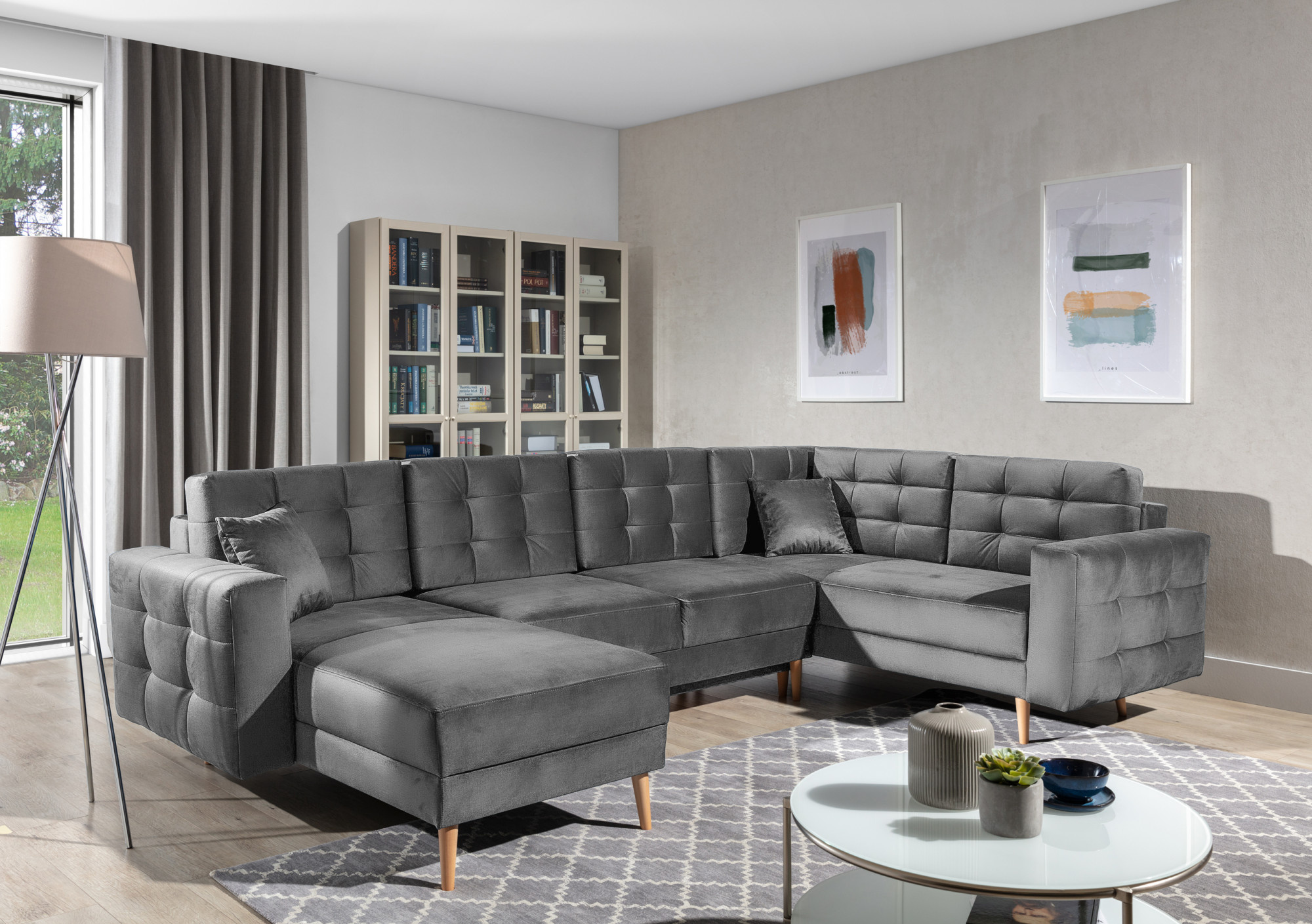 Sedací souprava ve tvaru U ASGARD je skvělou volbou pro ty, kteří hledají kombinaci moderního designu, komfortu a praktičnosti. Její prostorný a pohodlný design z ní činí ideální volbu pro rodinné domy i prostorné byty. Ať už ji umístíte do obývacího pokoje, herny nebo jiného prostoru, jistě se stane oblíbeným místem pro relaxaci a zábavu.