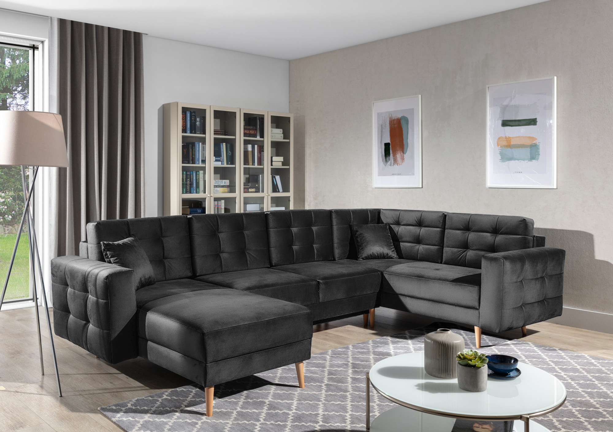 Sedací souprava ASGARD je potažena kvalitním materiálem, který dodává interiéru sofistikovaný vzhled. Její moderní design ve tvaru "U" je ideální pro velké prostory, kde se stane dominantním prvkem. Díky svému elegantnímu vzhledu a pečlivě vybraným materiálům se snadno stane oblíbeným místem pro relaxaci a setkávání s rodinou a přáteli.