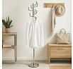 Stojanový věšák s kovovým provedením v broušeném niklu nabízí praktické řešení pro uspořádání oděvů a doplňků v interiéru. Je vybaven osmi pevnými háčky rozmístěnými do tří úrovní, které umožňují efektivní využití prostoru a snadný přístup k zavěšeným věcem. Stabilní kruhová základna zajišťuje bezpečnou oporu a celkovou stabilitu věšáku, jehož výška činí 175 cm. Povrchová úprava broušeným niklem přispívá k odolnosti proti poškození a usnadňuje údržbu. Nosnost věšáku je 10 kg, což odpovídá běžným požadavkům na zavěšení kabátů, šál či tašek.