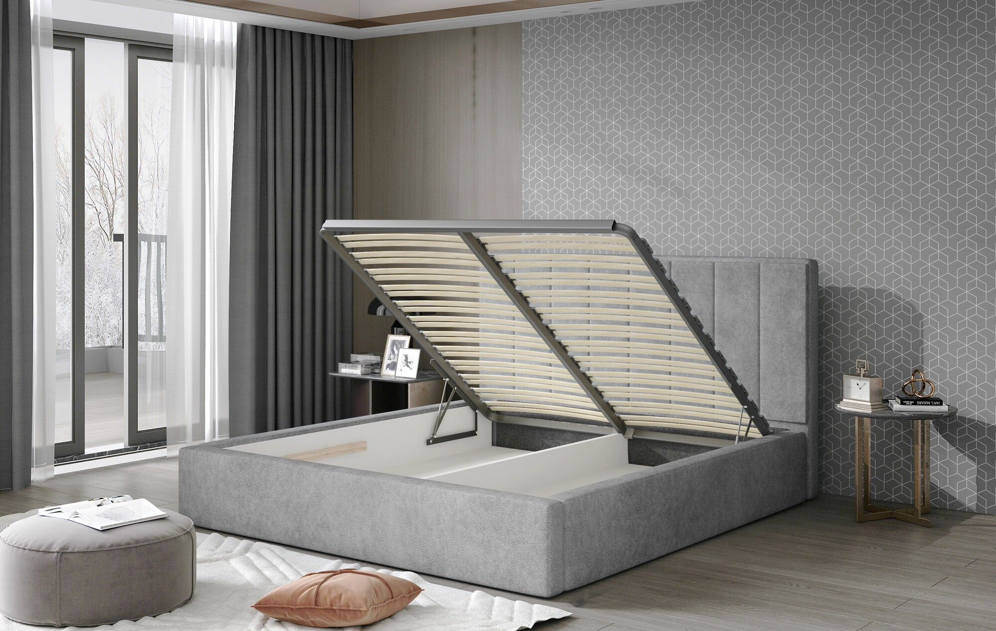 Audrey je klasicky stylovaná, vkusná a funkční postel, která je k dispozici ve čtyřech rozměrech 140/160/180/200 x 200 cm - to vám jistě poskytne velmi velký prostor k odpočinku. Audreyin design je obohacen o elegantní vysoké čelo postele s měkkým povrchem, které bude dokonalou oporou pro denní relaxaci. Naše postel je k dispozici ve dvou variantách: s rolovaným dřevěným rámem nebo s kovovým rámem s plynovým zvedákem, který vám poskytne prostorný úložný prostor na lůžkoviny, jenž se zvedá velmi snadno a tiše. Za zmínku stojí také skutečnost, že nábytek je k dispozici v mnoha barevných variantách, což vám jistě poskytne volnou ruku při zařizování ložnice podle vašich představ. Audrey je ve své vlastní třídě - pohodlí, design, styl... Tady je to celek, na čem záleží, a ten vychází prostě dokonale!
