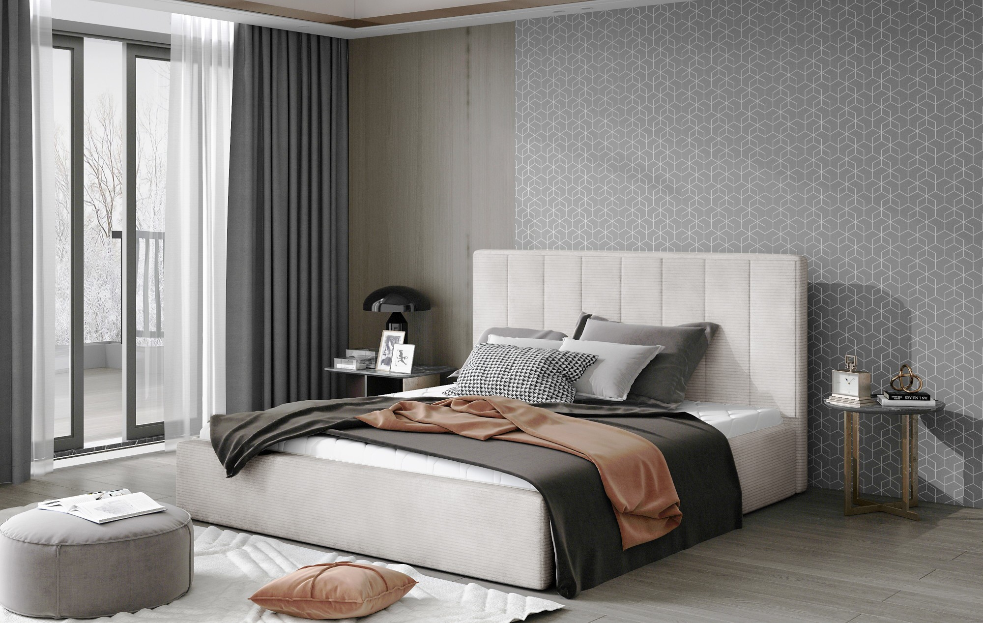 Audrey je klasicky stylovaná, vkusná a funkční postel, která je k dispozici ve čtyřech rozměrech 140/160/180/200 x 200 cm - to vám jistě poskytne velmi velký prostor k odpočinku. Audreyin design je obohacen o elegantní vysoké čelo postele s měkkým povrchem, které bude dokonalou oporou pro denní relaxaci. Naše postel je k dispozici ve dvou variantách: s rolovaným dřevěným rámem nebo s kovovým rámem s plynovým zvedákem, který vám poskytne prostorný úložný prostor na lůžkoviny, jenž se zvedá velmi snadno a tiše. Za zmínku stojí také skutečnost, že nábytek je k dispozici v mnoha barevných variantách, což vám jistě poskytne volnou ruku při zařizování ložnice podle vašich představ. Audrey je ve své vlastní třídě - pohodlí, design, styl... Tady je to celek, na čem záleží, a ten vychází prostě dokonale!