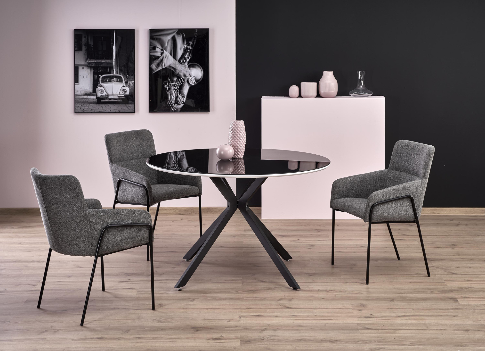 rozměry: fi120/76 cm, materiál: sklo / lakovaná MDF / práškově lakovaná ocel, barva: deska stolu - černá / bílá, nohy - černé