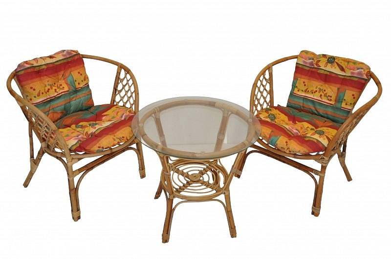 Ratanový nábytek - ratanová sedací souprava Bahama je vyrobena z přírodního neloupaného ratanu semambo. | Barva ratanové konstrukce i ratanového výpletu je přírodní - neloupaný ratan semambo. Velikost pohovky je 115x66x72 cm, nosnost pohovky je 150 kg. Velikost křesla je 66x68x72 cm, nosnost křesla je 110 kg. Výška sedu je 44 cm. Stolek má výšku 55 cm, průměr stolku je 60 cm.