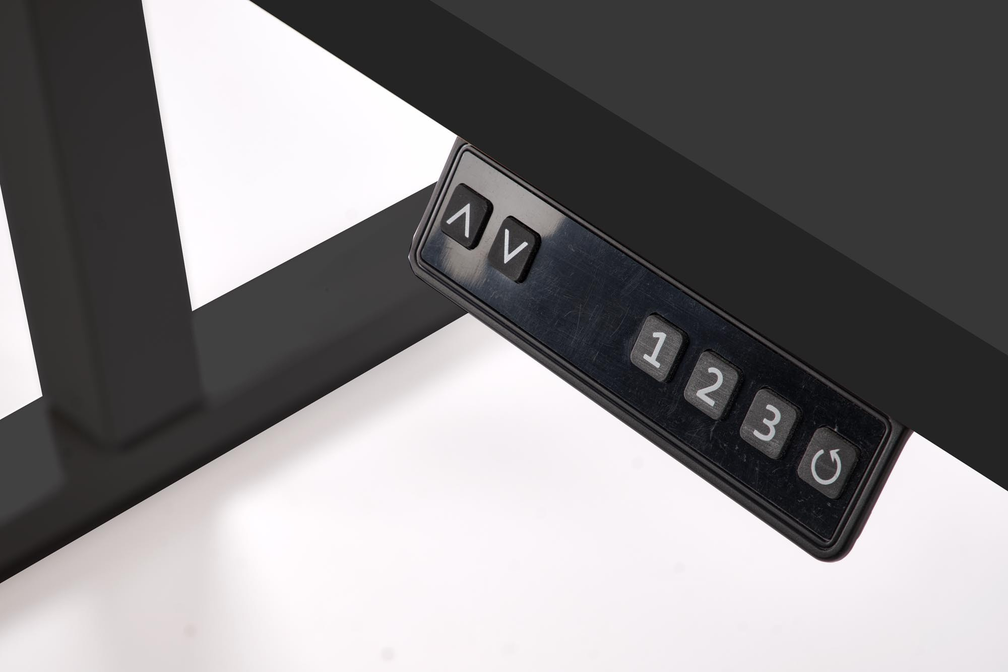 stůl s funkcí nastavení výšky, materiál: laminovaná nábytková deska / práškově lakovaná ocel, barvy: deska - černá, rám - černý