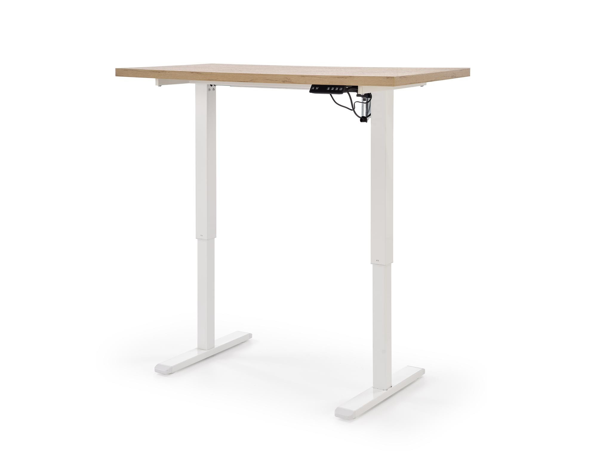 psací stůl s funkcí nastavení výšky, materiál: laminovaná nábytková deska / práškově lakovaná ocel, barvy: deska - dub artisan, rám - bílý