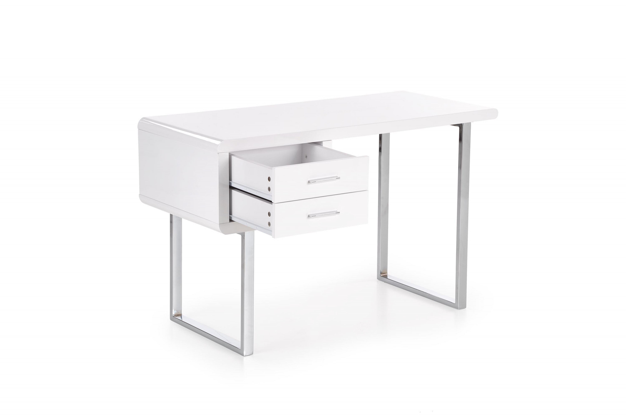 rozměry: 120/55/76 cm, materiál: MDF lakovaná do vysokého lesku / chromovaná ocel barva: bílá