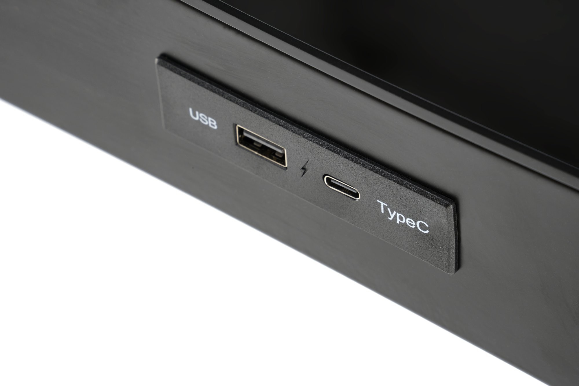 rozměry: 120/60/77-120 cm; výškově nastavitelný stůl / dotykový displej / bezdrátové nabíjení / USB port, materiál: sklo / práškově lakovaná ocel, barva: černá