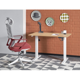 rozměry: 105/56/73-118 cm; stůl s funkcí nastavení výšky, materiál: nábytková deska s melaminovou dýhou / ocel s práškovým nástřikem, barvy: dub artisan - bílá