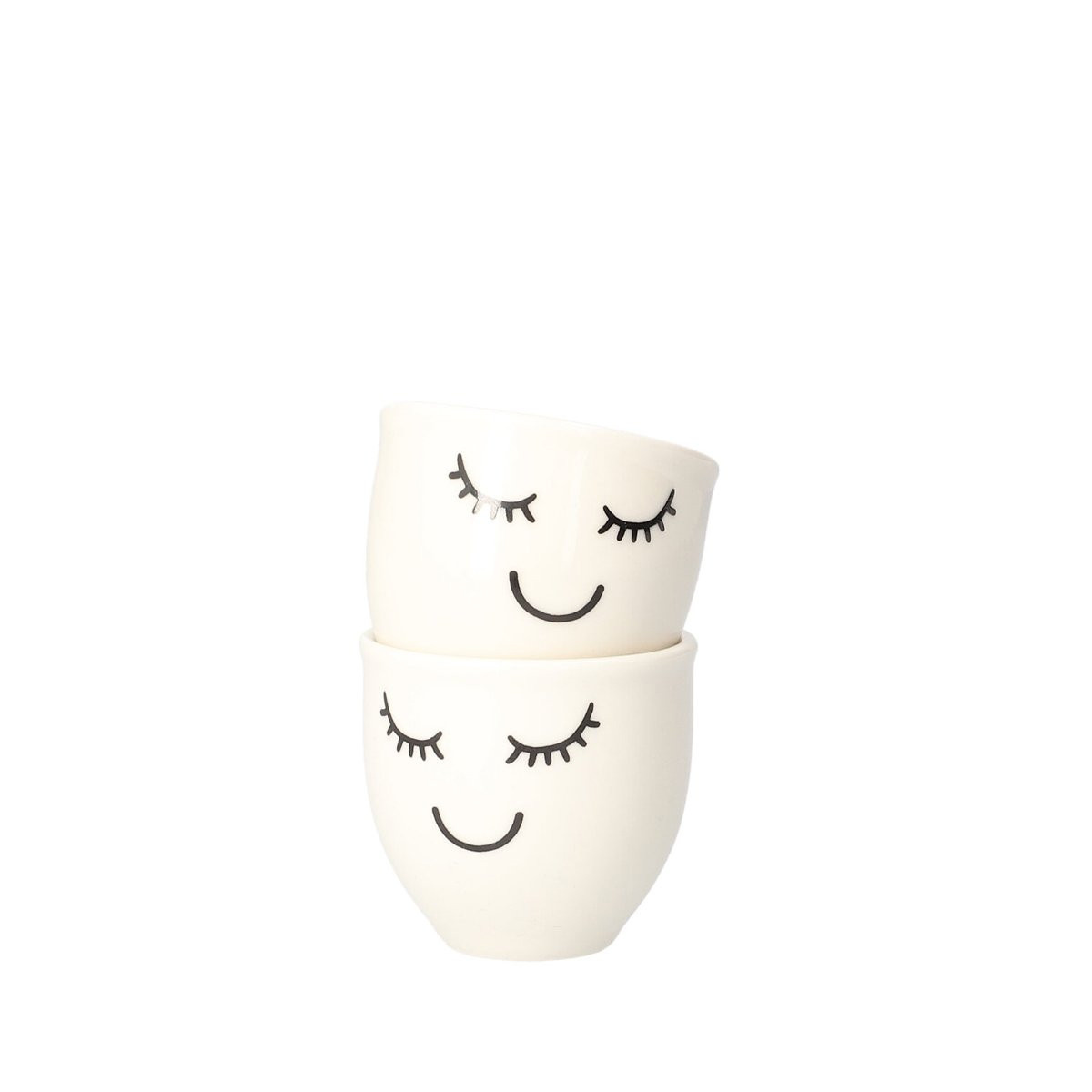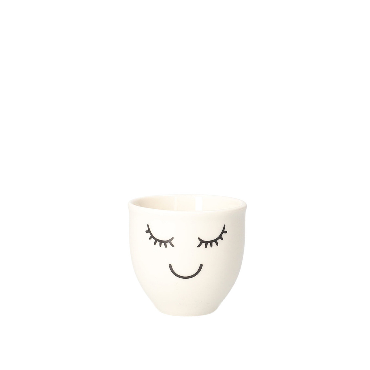 Sklenice na vejce EYELASHES má bílou barvu. Na jeho povrchu je malý obličej ukazující ústa a řasy. Vzor je v černé barvě, což dokonale kontrastuje s bílou sklenicí. To je povinná sada pro každého, kdo si nedokáže představit snídani bez vajec.Rozměry produktu jsou 5 x 5 cm.