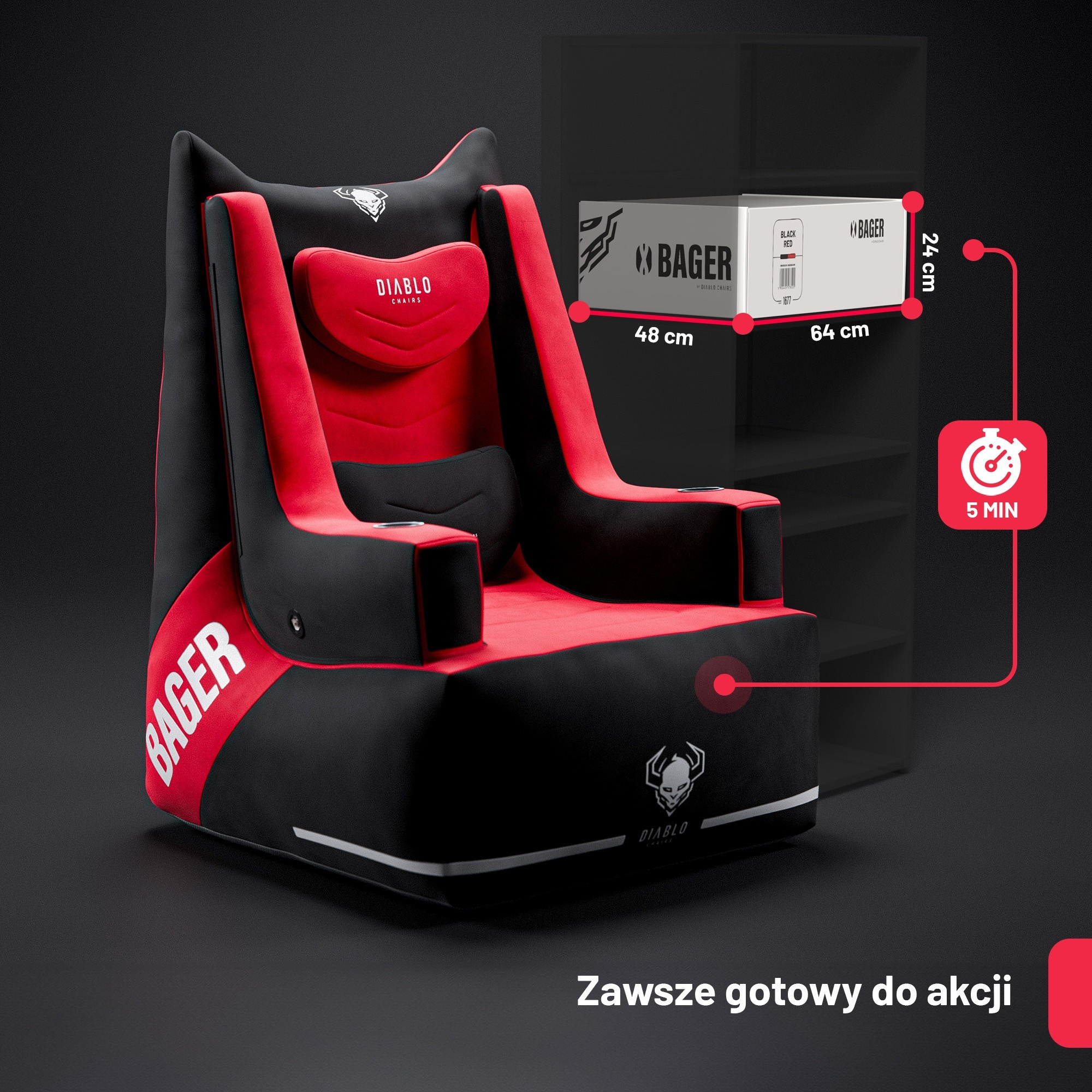 Hrajete v obýváku, čtete si ve svém pokoji, nebo trávíte čas s přáteli na terase? Černo-červené herní křeslo BAGER nově definuje pojem svobody. Toto prostorné křeslo s pohodlnými područkami vám poskytne dostatek prostoru pro odpočinek v sedě, po turecku, nebo dokonce i vzhůru nohama. Díky lehké, nafukovací konstrukci a maximálně odolnému materiálu si můžete užívat pohodlí BAGERu na všech svých oblíbených místech. Jednoduše ho sbalíte a přenesete kamkoliv budete chtít.