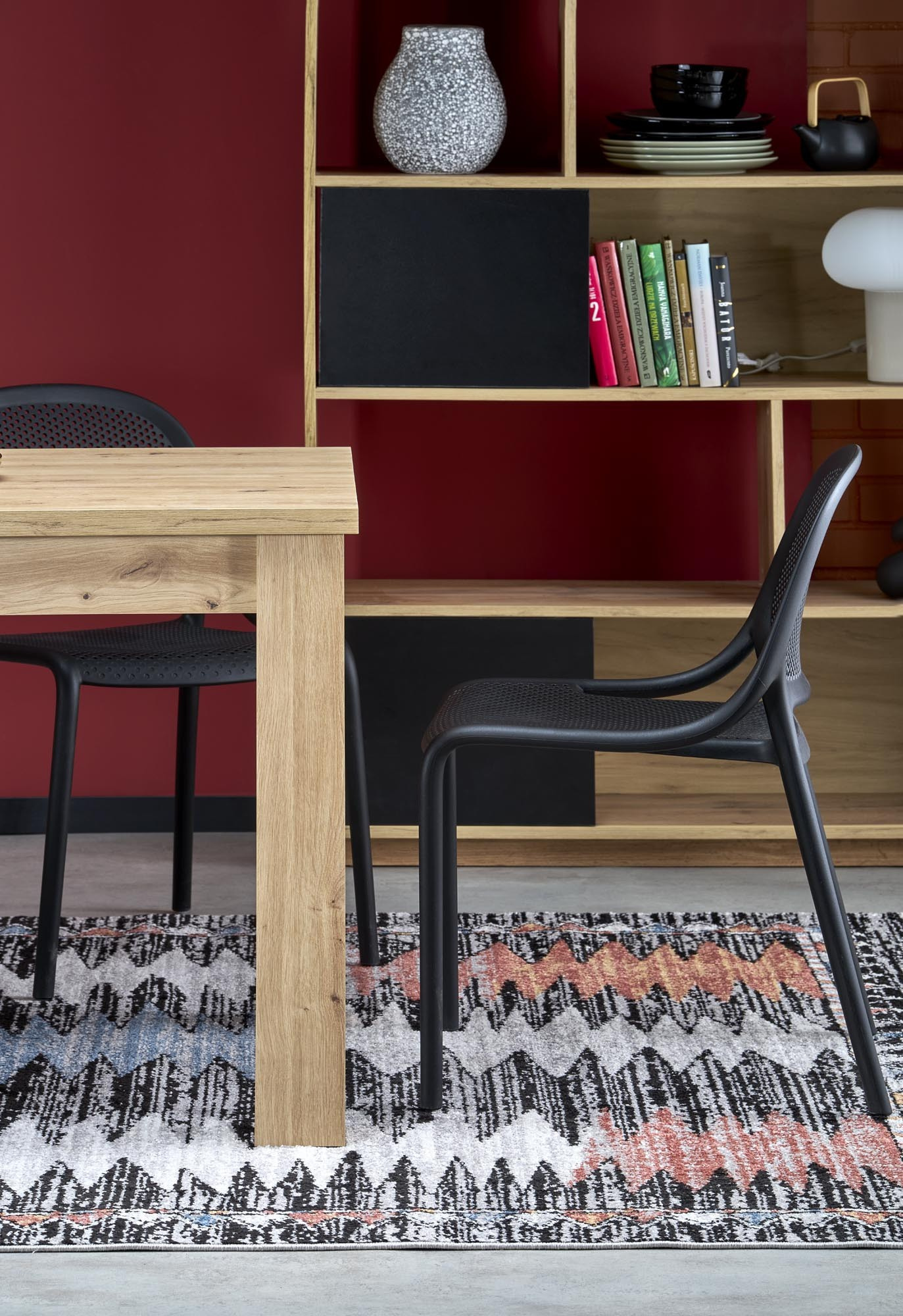 Stůl BAGIO je vyroben z kvalitního lamina, které zajišťuje jeho dlouhou životnost a odolnost vůči běžnému opotřebení. Povrch v dekoru Dub Artisan přináší do vašeho domova přírodní vzhled a teplé tóny, které snadno zapadnou do jakéhokoliv interiéru. Díky svému jednoduchému a čistému designu se stůl stane středobodem vaší jídelny.