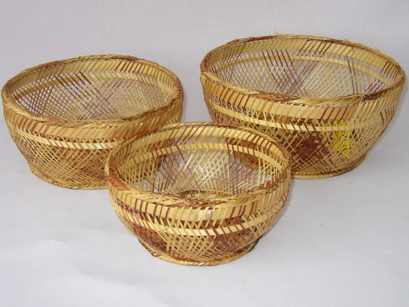 Misky jsou vyrobeny z přírodního bambusu. | Velikost misek je: průměr 25 cm, výška 12 cm průměr 22 cm, výška 10 cm průměr 19 cm, výška 9 cm
