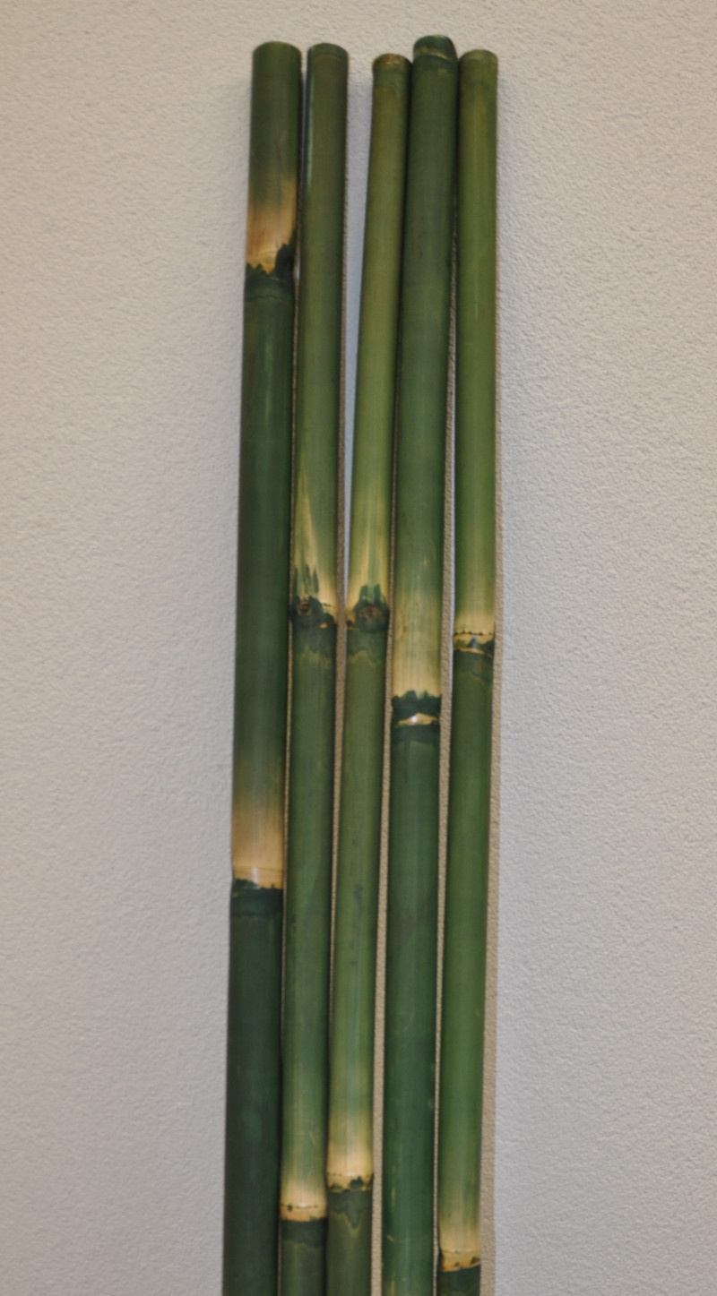 Bambusová tyč - přírodní bambusová tyč sušená na slunci přibližně 3 měsíce. | Tyč je mořena do zelené barvy. Průměr tyče je 3-4 cm - měřeno na silnějším konci tyče. Délka tyče je 2 metry. cena je uvedena za jednu celou tyč délky 2 metry.