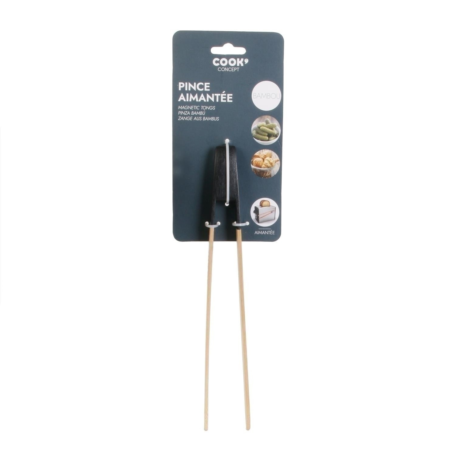 Bambusové kuchyňské kleště jsou nepostradatelným prvkem moderní kuchyně. Kleště se hodí všude tam, kde rukou není vhodné nebo by se nemělo sahat. Bambusové kleště s barevným zakončením mají vestavěný magnet, díky kterému je můžeme bez problémů zavěsit na kovové prvky, jako např. toustovač, při jehož používání se kleště rozhodně osvědčí. Bambusové, magnetické kleště můžeme používat při smažení, obracení lívanců nebo vyjímání vaflí z vaflovače. Bambusové kleště by se neměly mýt v myčce. Rozměry balení: 9,5x35x2cm