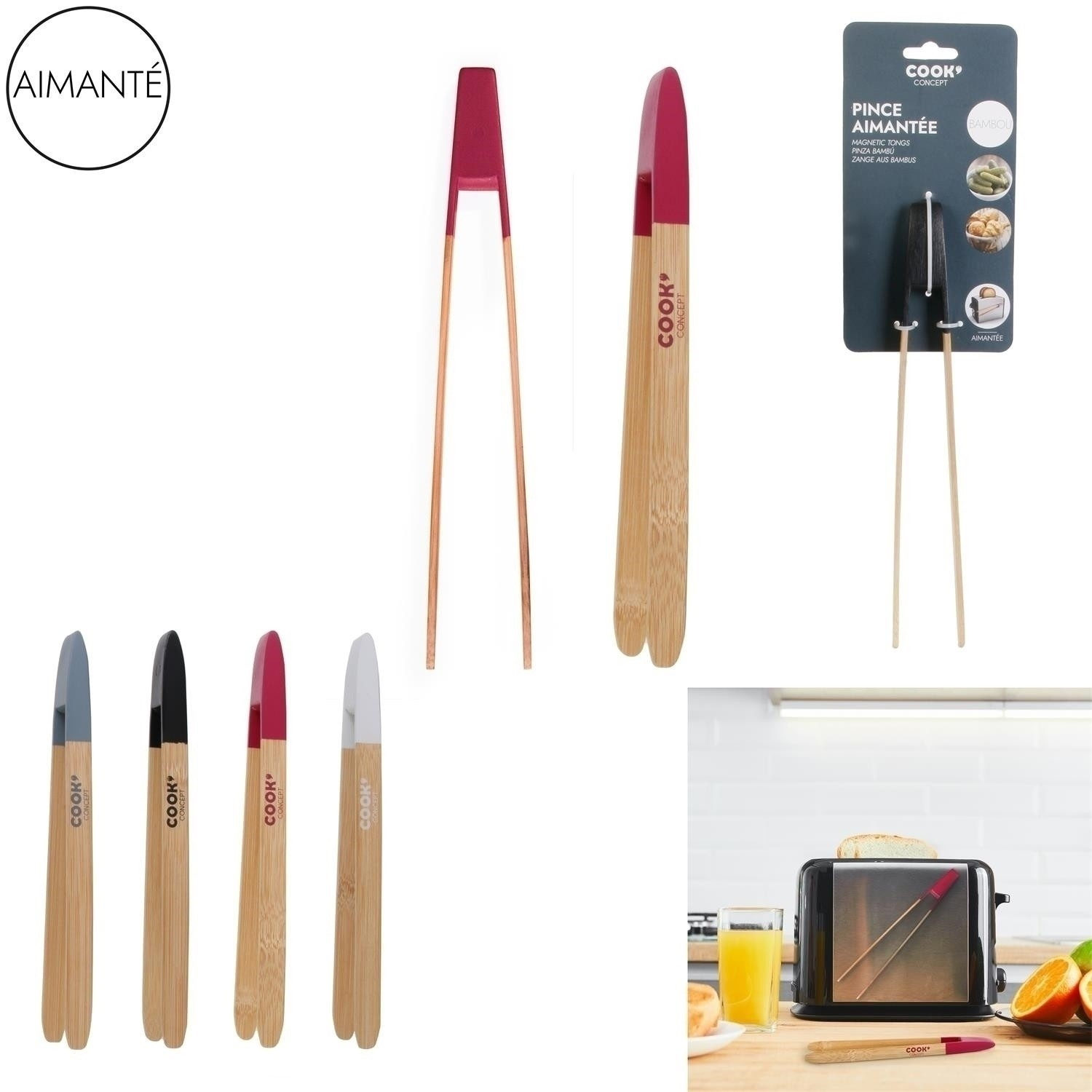 Bambusové kuchyňské kleště jsou nepostradatelným prvkem moderní kuchyně. Kleště se hodí všude tam, kde rukou není vhodné nebo by se nemělo sahat. Bambusové kleště s barevným zakončením mají vestavěný magnet, díky kterému je můžeme bez problémů zavěsit na kovové prvky, jako např. toustovač, při jehož používání se kleště rozhodně osvědčí. Bambusové, magnetické kleště můžeme používat při smažení, obracení lívanců nebo vyjímání vaflí z vaflovače. Bambusové kleště by se neměly mýt v myčce. Rozměry balení: 9,5x35x2cm