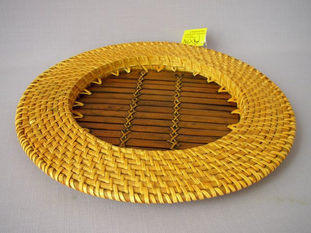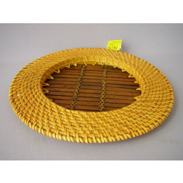 Tácek vyrobený ručně z přírodního ratanu v kombinaci s přírodním bambusem. | Tác má velice praktické použití, můžete ho použít jako jídelní podtácek pod talíř, tác k servírování ovoce nebo i jako podklad pro suchou vazbu dle Vaší fantazie. Průměr tácu je 32,5 cm Výrobek má velice kvalitní zpracování.