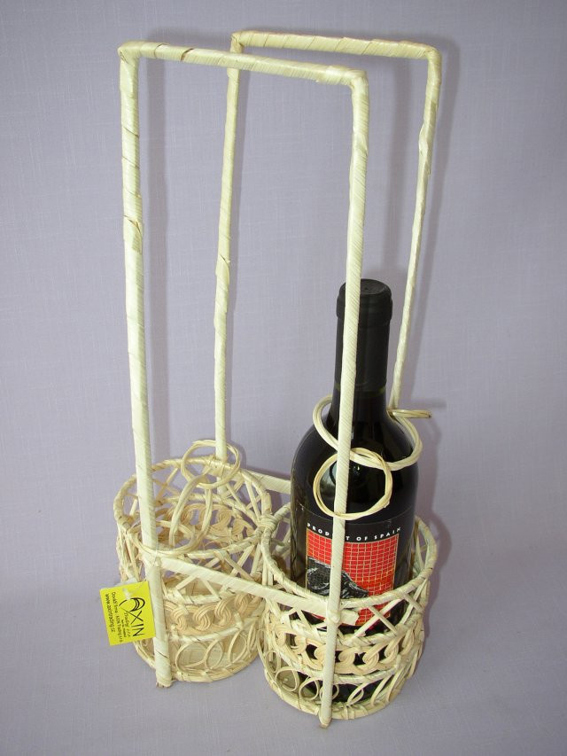 Ratan, proutí -bambusový košík na 2 láhve, prodáváno bez dekorace láhve vína |