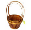 Bambusové košíky jsou vhodné jak pro různou dekoraci, tak je lze použít i jako obal na květinu. | Velikost košíků: Velký košík: průměr v dolní části uvnitř je 19 cm, průměr v horní části uvnitř je 22 cm, hloubka košíku uvnitř je 12,5 cm, celková výška s uchem je 41 cm Střední košík: průměr v dolní části uvnitř je 16 cm, průměr v horní části uvnitř je 18 cm, hloubka košíku uvnitř je 11 cm, celková výška s uchem je 35 cm Malý košík: průměr v dolní části uvnitř je 13 cm, průměr v horní části uvnitř je 15 cm, hloubka košíku uvnitř je 9 cm, celková výška s uchem je 33 cm