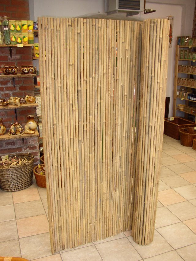 Bambusový plot - průměr bambusových tyčí cca 2 cm, jsou spojeny drátem 3 mm. Jednotlivé tyčky jsou na drát navlékány způsobem jako korále, drát je plně schován. | Velikost výrobku: výška 180 cm, délka 200 cm Bambusový plot je vhodný nejen k zastínění či oddělení prostoru, ale i jako příjemná přírodní dekorace.