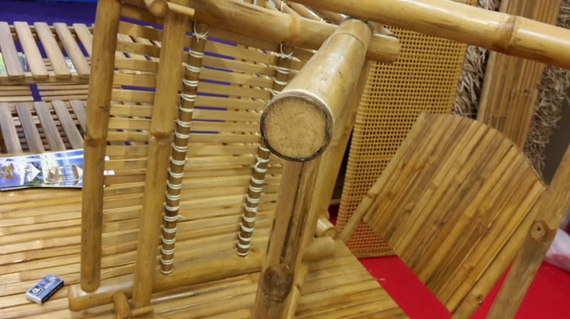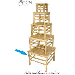 Úklid skladu!!! Stolek vyrobený z přírodního bambusu.> | Pro výrobu tohoto bambusového nábytku je použit druh bambusu s minimální vnitřní dutinou, který roste v jižní oblasti Vietnamu. Díky tomu je bambusový nábytek velice pevný a nepraská. Ilustrační fotografie detailu použitého bambusu je na druhé a třetí fotografii výrobku. Velikost stolku je 57x57x44 cm - největší ze setu, na obrázku označeno šipkou.