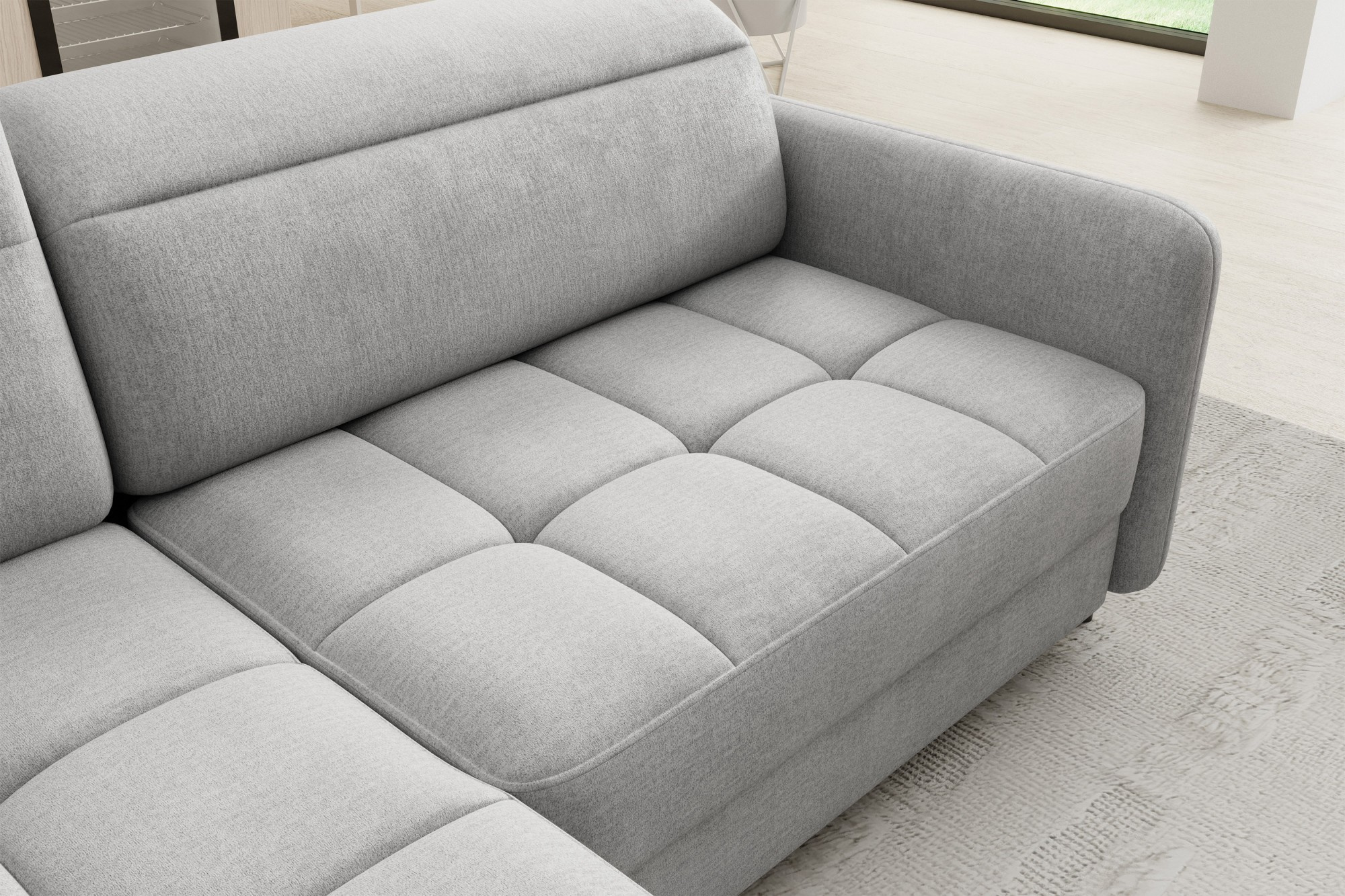 Jednou z hlavních předností této sedací soupravy je její praktická funkčnost. Disponuje úložným prostorem, který je ideální pro uschování dek, polštářů nebo dalších nezbytností, které chcete mít vždy po ruce, ale zároveň je mít úhledně uklizené. Navíc je souprava vybavena rozkládacím mechanismem, který snadno promění pohovku na pohodlné lůžko s plochou na spaní 160 x 128 cm. Tato funkce je perfektní pro hosty, kteří u vás zůstanou přes noc.