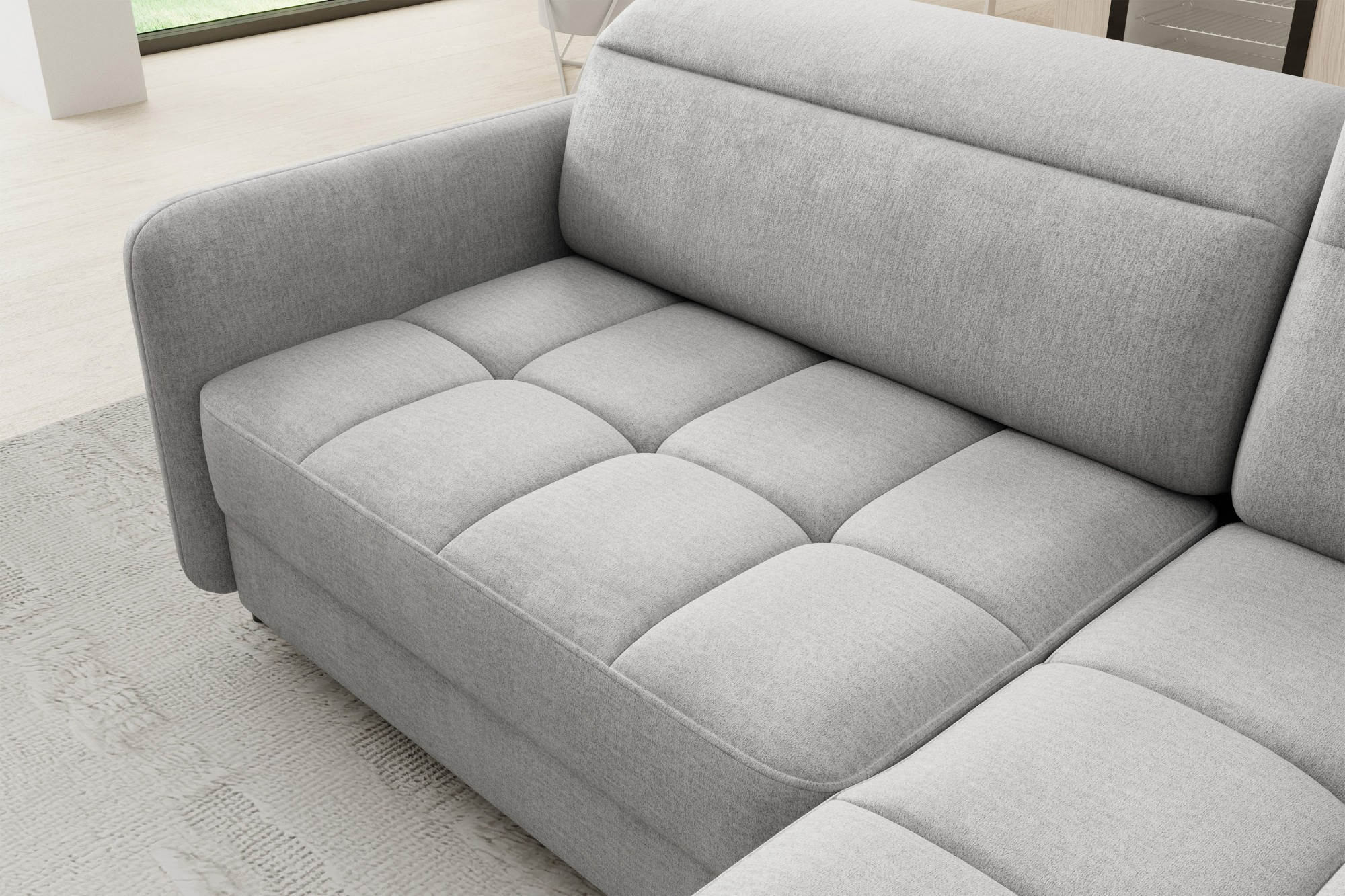 Jednou z hlavních předností této sedací soupravy je její praktická funkčnost. Disponuje úložným prostorem, který je ideální pro uschování dek, polštářů nebo dalších nezbytností, které chcete mít vždy po ruce, ale zároveň je mít úhledně uklizené. Navíc je souprava vybavena rozkládacím mechanismem, který snadno promění pohovku na pohodlné lůžko s plochou na spaní 160 x 128 cm. Tato funkce je perfektní pro hosty, kteří u vás zůstanou přes noc.