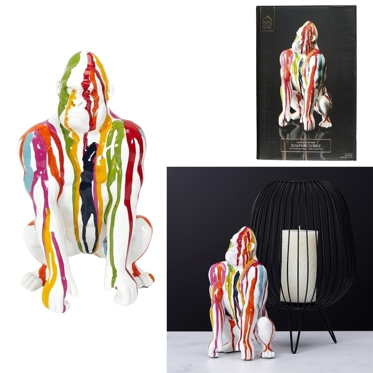 Dekorace gorila umožní zařídit komodu v předsíni nebo ložnici. Barevná dekorativní gorila z plastu byla dokončena ve vysokém lesku. Dekorace může být místem pro přívěsky nebo náramky. Rozměry balení: 30x39x38 cm