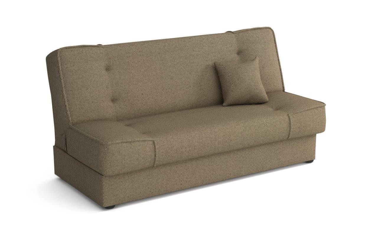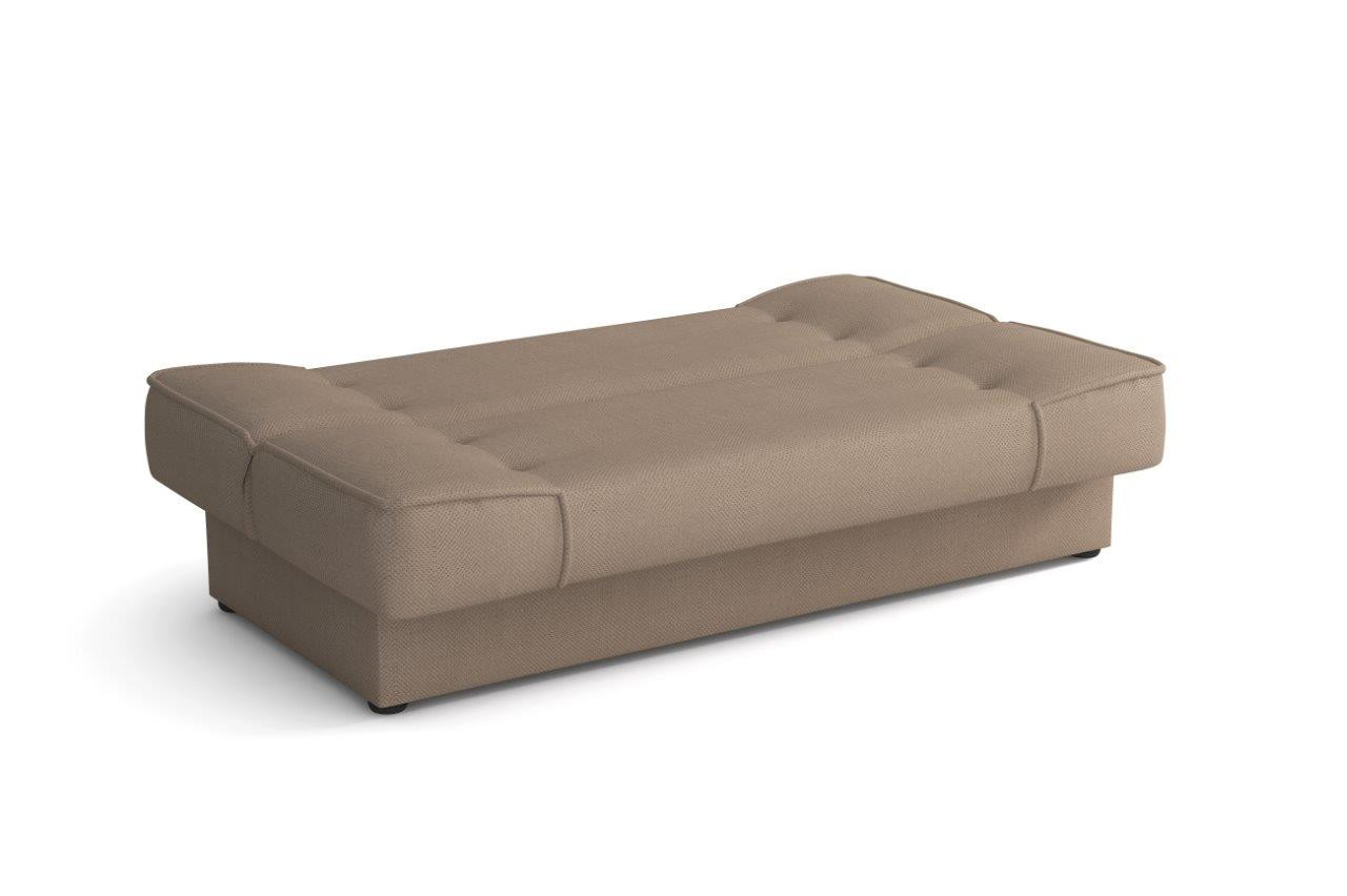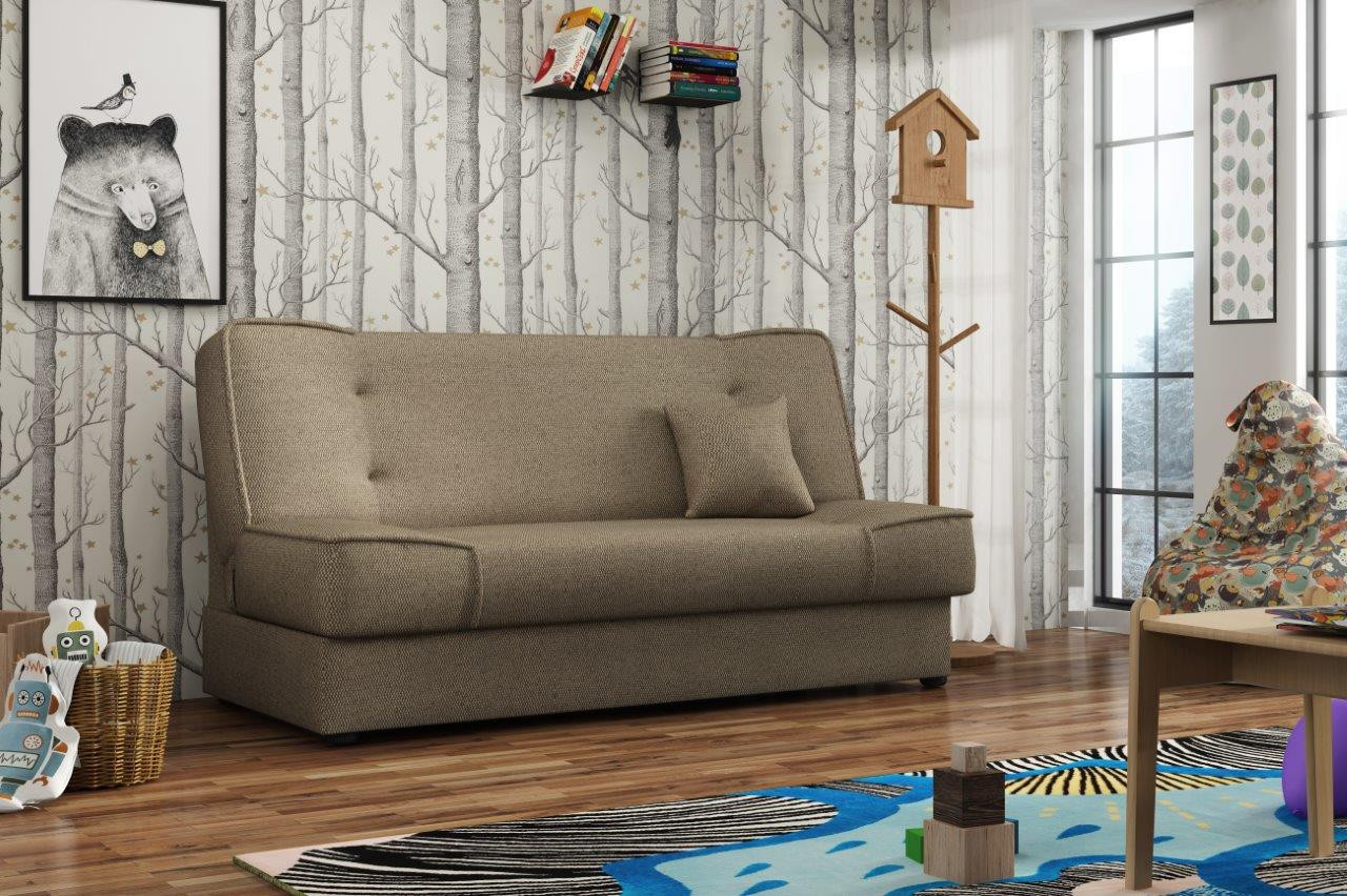 Pohovka Bega je vyrobená v jednoduchém a zároveň nadčasovém designu, který se hodí do každého interiéru a skvěle ho doplní. Díky svým rozměrům nezabere moc místa a je vhodná i do malých pokojů. Výplň sedáku tvoří kombinace pružin bonell s kvalitní PUR pěnou. Pohovka je rozkládací a samozřejmostí je i nepostradatelný úložný prostor. Jednoduchým rozložením pomocí systému klik-klak vznikne lůžko k občasnému přespání. Vybrat si můžete z několika trendy odstínů. V ceně pohovky je 1 dekorační polštářek. Ostatní vyobrazené doplňky a dekorace nejsou v ceně. Zobrazení barev na fotografii se může od skutečnosti lišit.