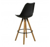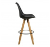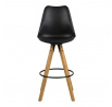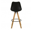 Praktická a pohodlná barová stolička Dima. Pohodlná stolička v tlumené barevnosti a moderním stylu má sedák potažený černou eko kůží a dřevěnou základnu. Sedák je vymodelován spolu s opěradlem jako jeden celek, s dodatečným polštářem rovněž potaženým eko kůží v černé barvě. Základna ve formě čtyřnožky je vyrobena z lišt z kaučukového dřeva, mořeného na barvu dubu a ošetřeného olejem. Na spodní části nohou stoličky je černá kovová lišta, která slouží jako opěrka pro nohy. Celý kus bude vypadat skvěle v hospodě nebo jako sedátko u kuchyňského ostrůvku. Hmotnost: 7,75 kg. Rozměry kartonu: 74 cm x 37 cm x 56 cm Výška sedadla: 75 cm Šířka sedadla: 48,5 cm Hloubka sedadla: 40 cm