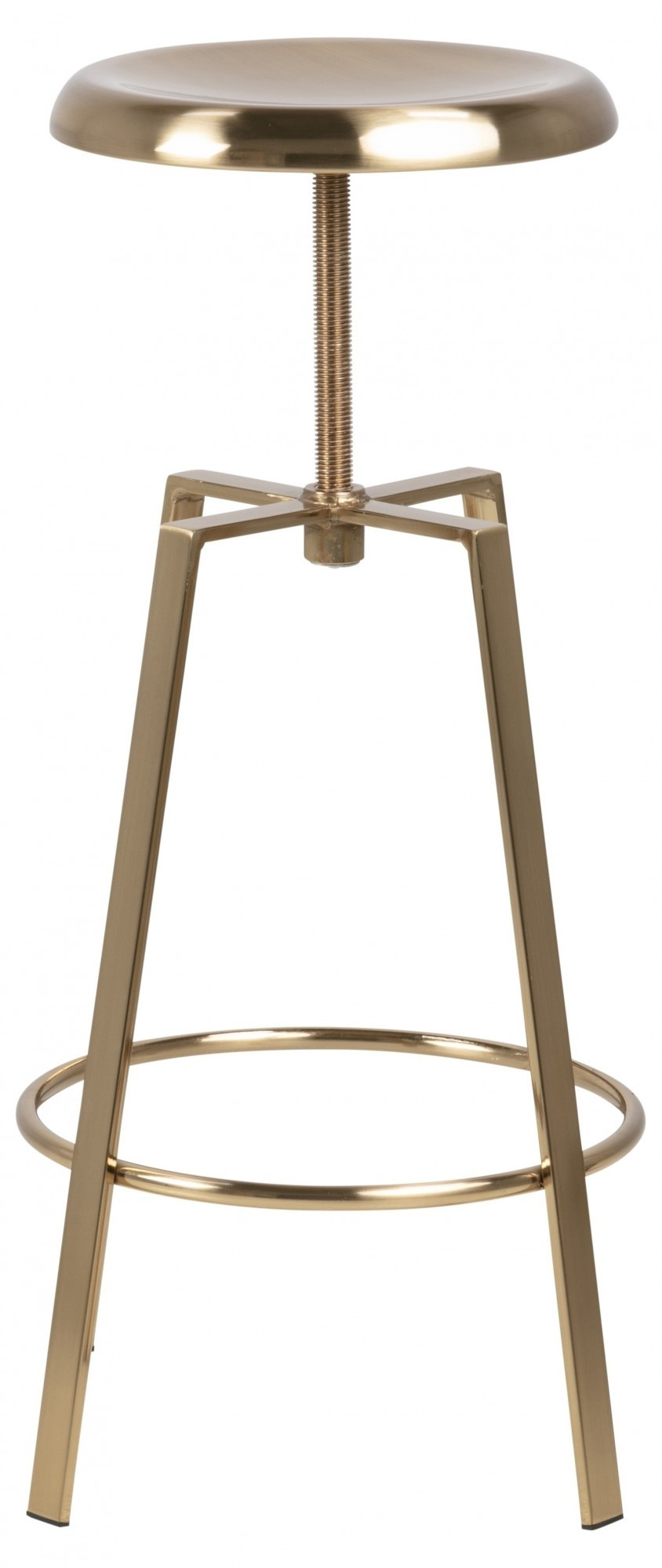 Barová stolička Goose se ideálně hodí k modernímu kuchyňskému ostrůvku, baru nebo hospodě. Sedák stoličky je vyroben z kovu ve zlaté barvě. Díky použití tohoto materiálu je stolička velmi odolná a univerzální. Stylové kovové nohy tvoří se sedákem zajímavou kombinaci. Sedák je otočný a má nastavitelnou výšku. Základna stoličky je práškově lakovaná na zlatou barvu. Dodatečně byly nohy podepřeny obručí umístěnou na přibližně. 1/3 jejich výšky. Hmotnost stoličky: 7 kg Počet kusů v kartonu: 1 Rozměry kartonu: 41 cm x 69 cm x 41 cm