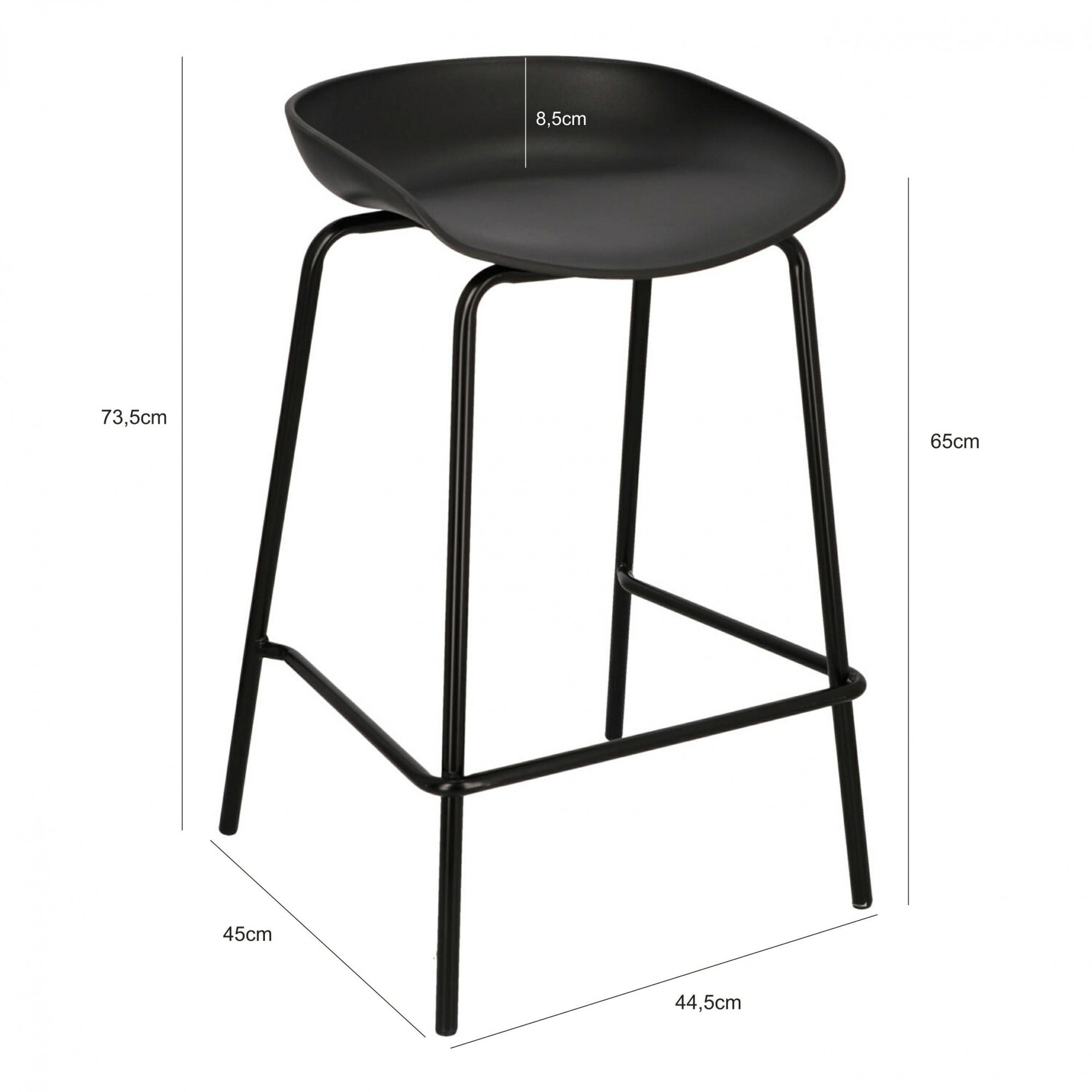 Barová stolička Grego je krásný aranžérský prvek, který se osvědčí u ostrůvku ve vaší kuchyni nebo jídelně, dodávající jí moderní charakter. Profilované sedadlo obklopuje naše tělo, aby zajistilo stabilní a pohodlnou polohu při sezení. Černé sedadlo z odolného polypropylenu, který je mimořádně odolným materiálem, spočívá na černé kovové základně, která zajišťuje konstrukci stabilní oporu. Stolička je také vybavena pohodlnou opěrkou na nohy, díky které bude používání ještě komfortnější. Šířka sedáku: 42,5 cm Hloubka sedáku: