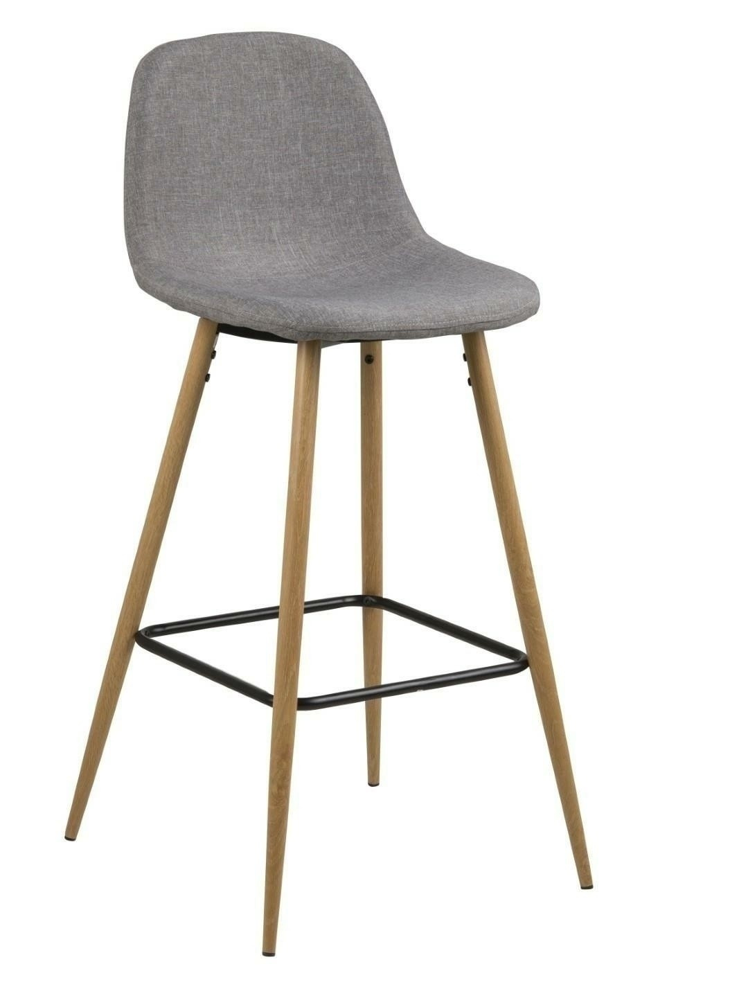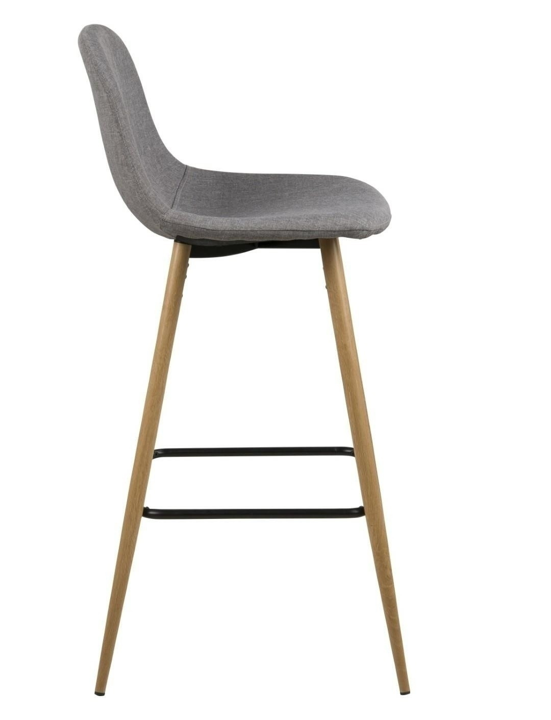 Wilma je elegantní, velmi moderní barová stolička. Charakterizuje ho zajímavá tkanina Sawana light grey 21, kterou byl potažen. Sedák a opěradlo jsou mírně profilované, aby zajistily co nejpohodlnější polohu k sezení. Základem stoličky jsou kovové nohy v barvě dubu. Zajímavý kontrast celku dodává černý podpěra, která také slouží jako podnožka. Hmotnost židle je pouze 6 kg. Maximální zatížení: 120 kg. Rozměry kartonů. První: 60cm x 36cm x 47cm. Druhý: 78cm x 14cm x 7cm