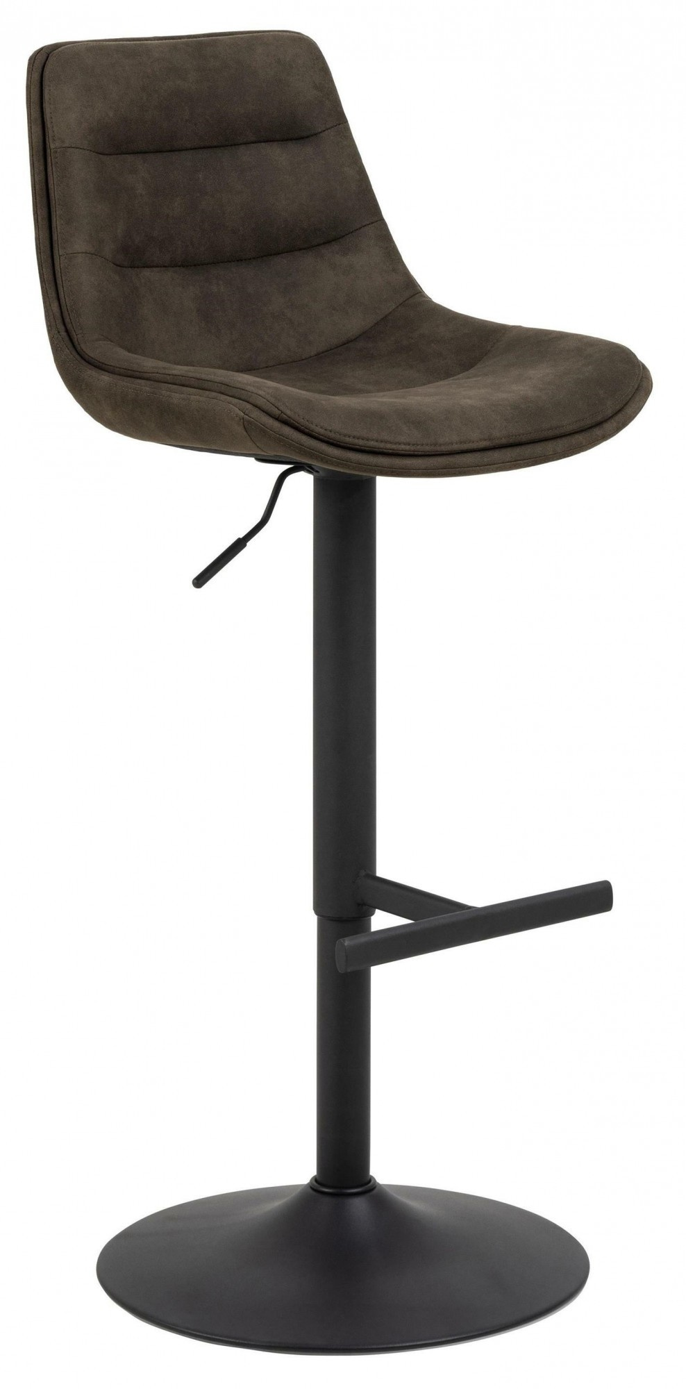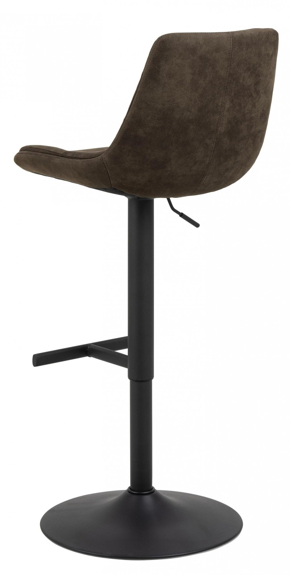 Tato barová stolička je moderní volbou pro současný domov. Má výrazný charakter díky tkanině z mikrovlákna, která má speciální povrchovou úpravu zajišťující surový vzhled. Černá základna ve tvaru trumpety s jednoduchou opěrkou nohou zdůrazňuje vzhled barové stoličky. Hlavní vlastnosti: Barová stolička čalouněná látkou z mikrovlákna Má horizontální prošívání Nastavení výšky díky plynovému pístu Má funkci otáčení Černá, práškově lakovaná kovová základna s opěrkou na nohy Certifikát FSC Výška opěradla: 30 cm Šířka sedáku: 46 cm Hloubka sedáku: 38 cm Výška sedáku: 65-86 cm Počet kartonů: 1 Rozměry kartonů: 57x55x50 cm Hmotnost kartonů: 11,3 kg