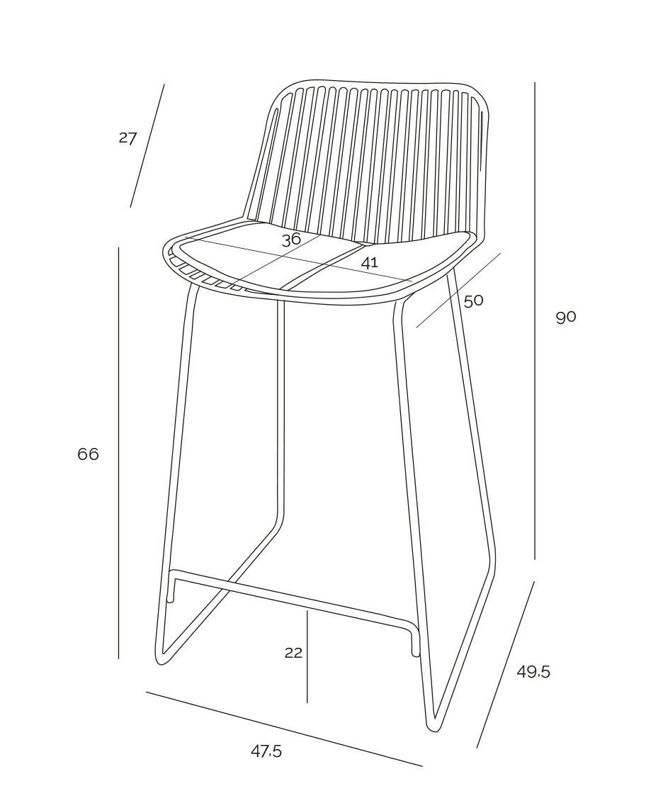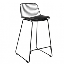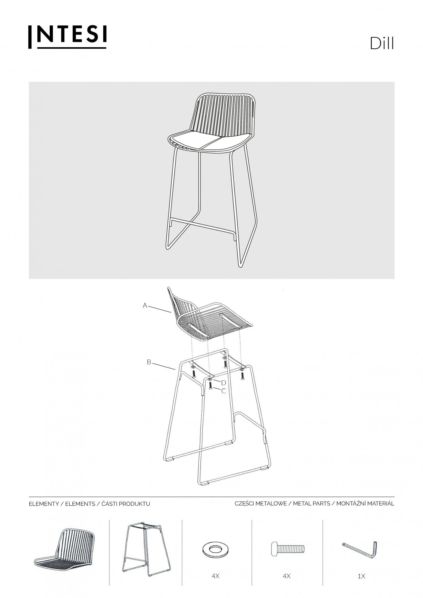Designová barová židle Dill je odpovědí na potřebu minimalistického zařizování prostoru nejen ve vlastním bytě, ale také ve veřejných, hotelových či restauračních prostorách. Barová židle dokonale odráží ducha minimalismu a skandinávské formy. Bylo vyrobeno zcela z kovu lakovaného práškovou barvou na černo. Lesklá povrchová úprava nábytku dokonale doplňuje matný polštář vyrobený z eko kůže, v barvě židle, který se připevňuje na sedadlo pomocí suchých zipů. Židli lze stohovat, vyžaduje montáž a její maximální zatížení je 120 kg. Židle