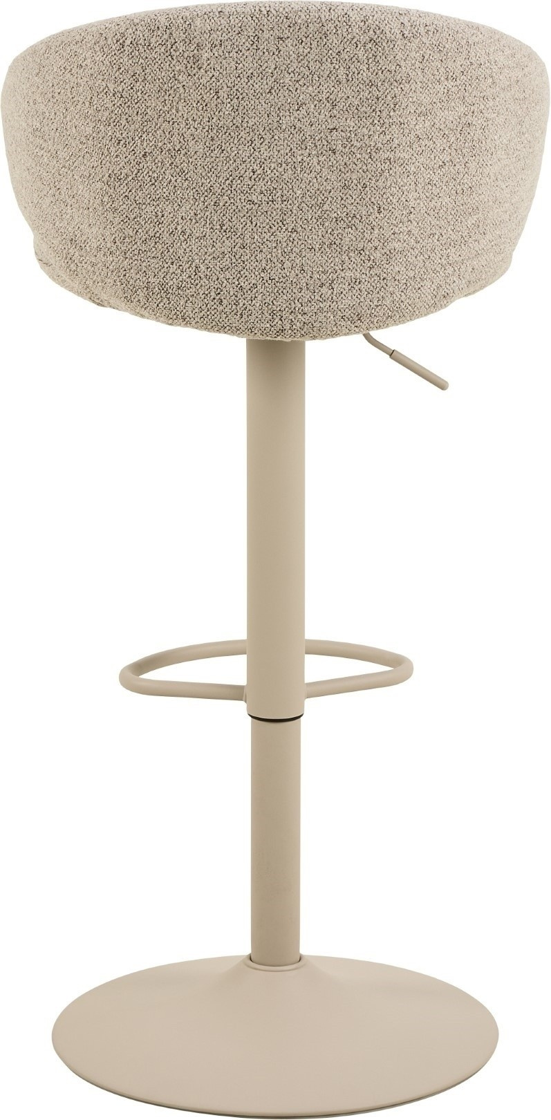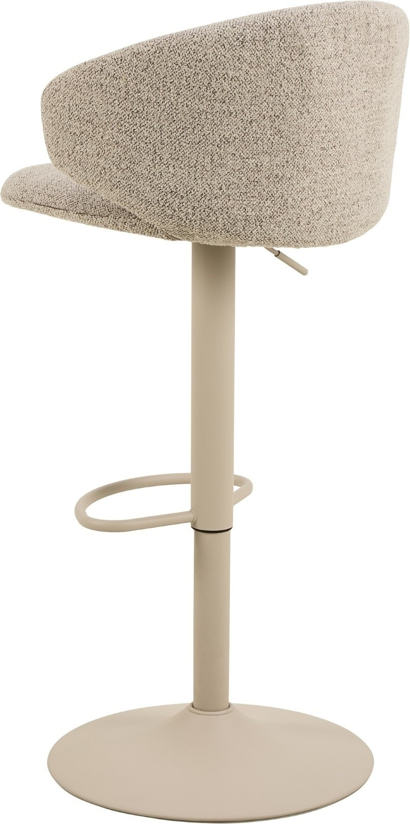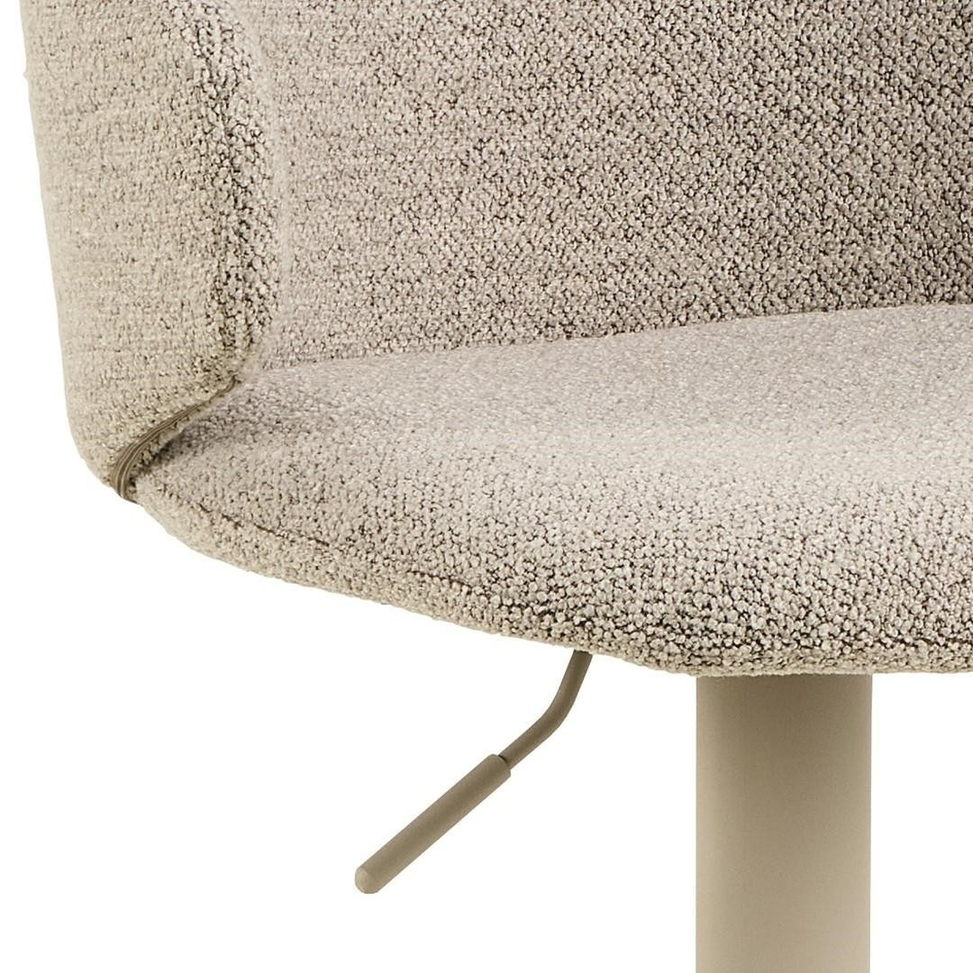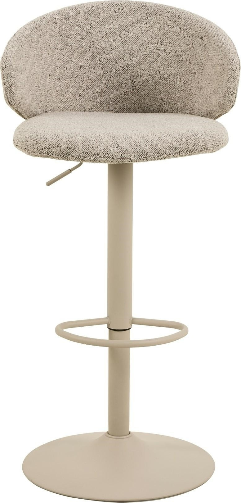 Díky krátkému, zakřivenému opěradlu a pohodlnému sedáku je barová stolička Ella s nastavitelnou výškou příjemná na sezení i pohled. Kombinace béžové strukturované tkaniny a černé základny ve tvaru trumpety, posílená otočnou funkcí a opěrkou na nohy, činí z tohoto moderního sedacího nábytku možnost, která doplní každý domov. Barová stolička s plynovým pístem, funkcí otáčení a opěrkou na nohy. Plynový píst umožňuje nastavení výšky v rozmezí 61-82 cm. Stabilní základna ve tvaru trubky vyrobená z oceli lakované práškovou barvou na černo. Certifikát FSC. Navrženo Lasse Cha Pedersenem. Výška opěradla 24 cm Šířka sedáku 47 cm Hloubka sedáku 41,5 cm Maximální výška sedáku. 82 cm Výška sedadla min. 61 cm Výška područky od podlahy 76 cm Šířka područky 3,5 cm Hloubka područky 22 cm Výška područky 14 cm