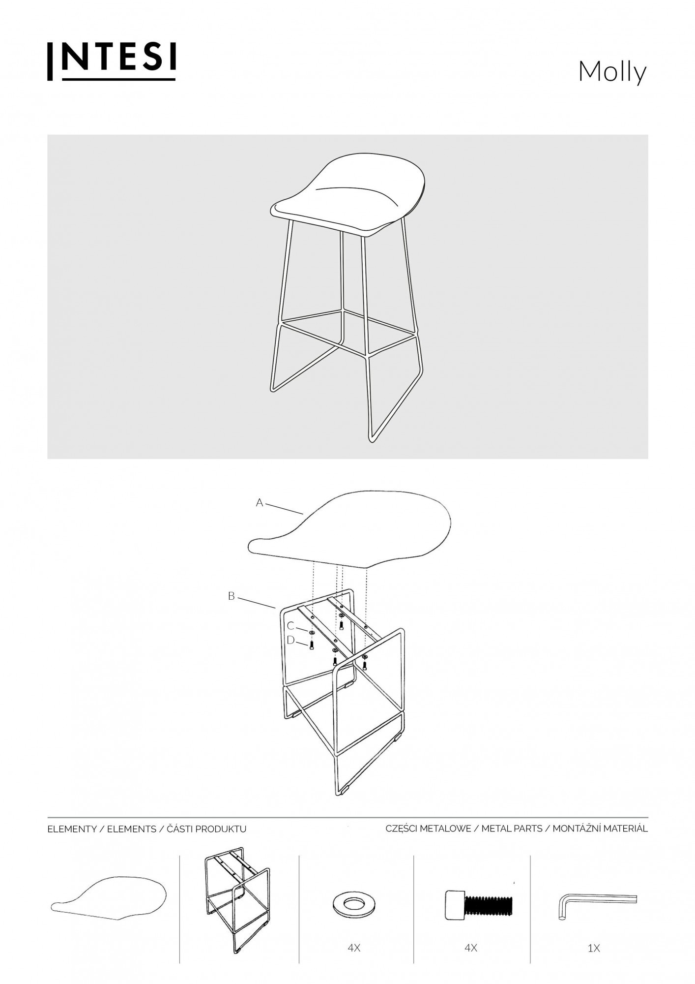 Stylová barová židle Molly je výjimečná díky svému jednoduchému tvaru. Barová židle Molly má tvarované sedadlo vyrobené z matného plastu a kovovou základnu s lesklou úpravou. Držák, na který si pohodlně položíte nohy, vytváří efekt trojrozměrnosti, který je často vyhledávaným prvkem moderního nábytku. Molly je synonymem pro jednoduchou formu a moderní řešení. Židle vyžaduje vlastní montáž, její maximální zatížení je 120 kg, není vhodná pro venkovní použití. Židle je k dispozici ve 2 verzích výšky sedáku. Vys. sedadla: 66