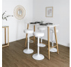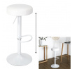 Bílá barová židle s nastavitelnou výškou je ideálním nábytkem do moderní, minimalistické kuchyně, kde je funkčnost na prvním místě. Kulatá stolička na jedné noze je vybavena opěrkou na nohy, která usnadňuje sezení. Sedák barové židle je kombinací bílé, měkké eko kůže s hustou čalounickou pěnou. Základna a noha barové židle byla vyrobena z kovu lakovaného práškovou barvou na bílo. Vyžaduje montáž Max. zatížení 110 kg Max. 2 ks v kartonu, Rozměry kartonu: 45x40x40 cm Hmotnost: 9,6 kg