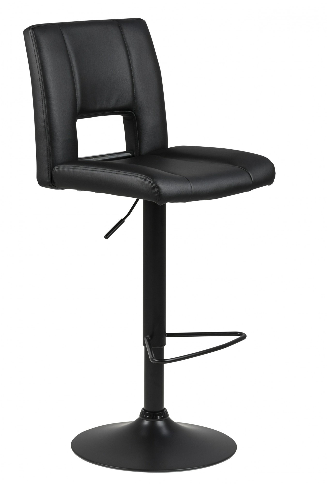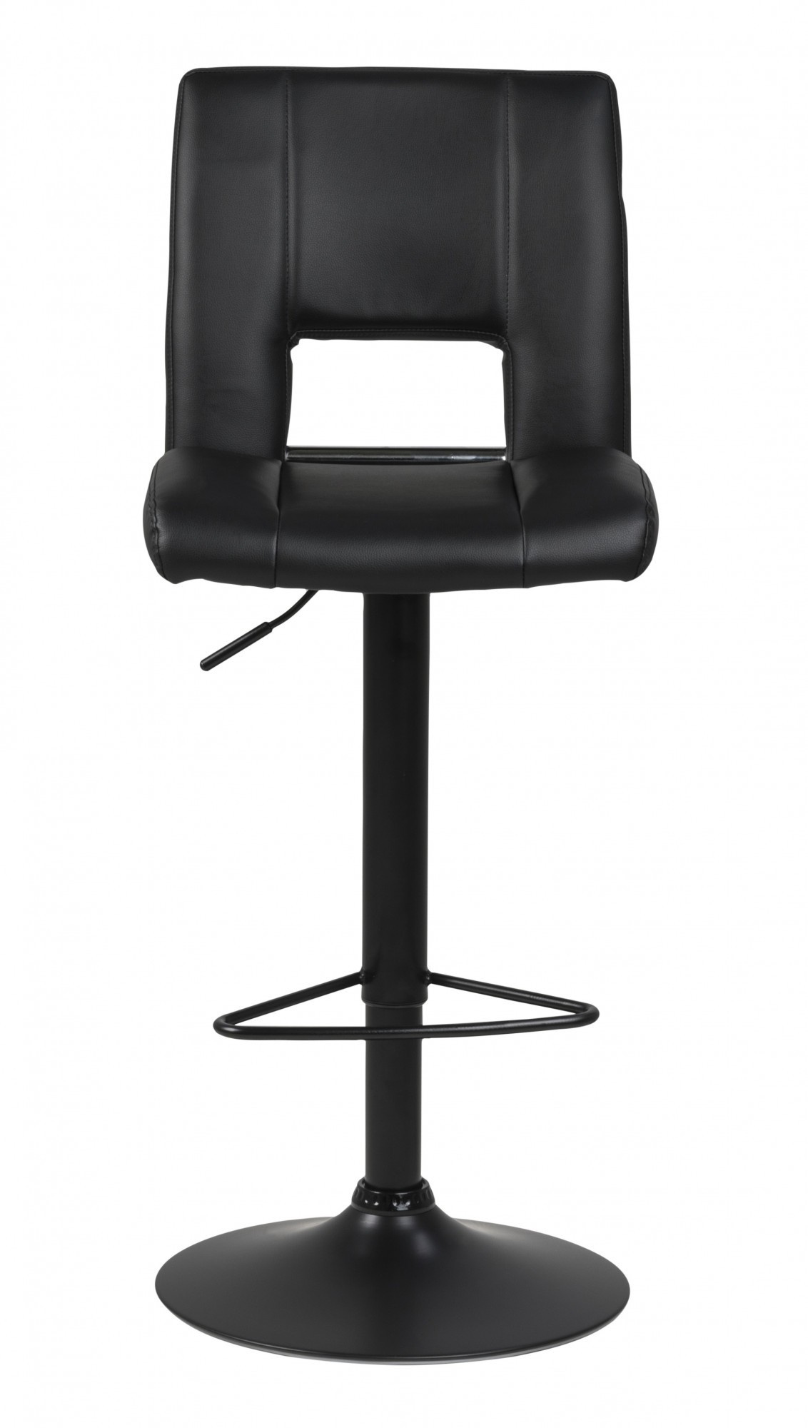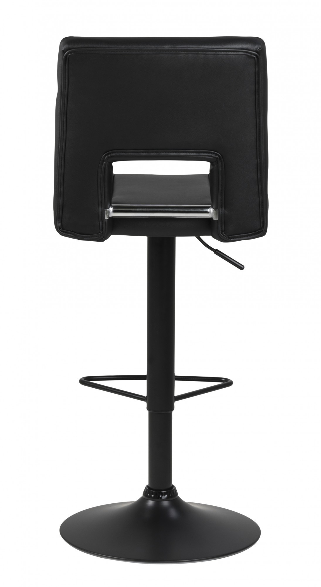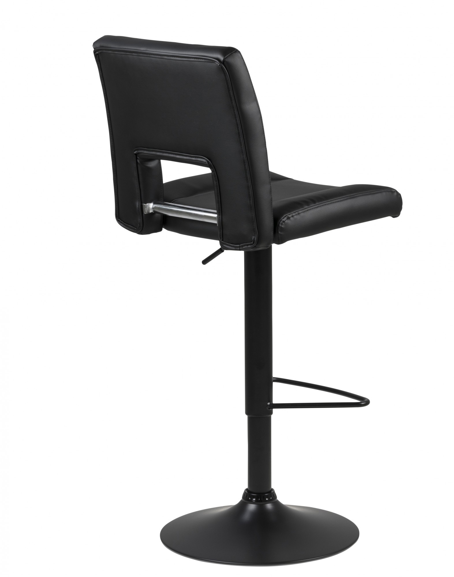 Barová židle Sylvia je nábytek pro moderní bar nebo jídelnu. Sedák z polyuretanové pěny je potažen čalouněním z látky s vzhledem PU kůže černé barvy BK1. Základ tvoří dlouhá, štíhlá noha v černé barvě s matným povrchem. Barová židle má vysoké, pohodlné opěradlo a další oporu pro nohy. Stolička má nastavitelnou výšku. Počet kartonů: 1 Rozměry kartonů: 60x44x44cm Hmotnost kartonů: 10,5kg